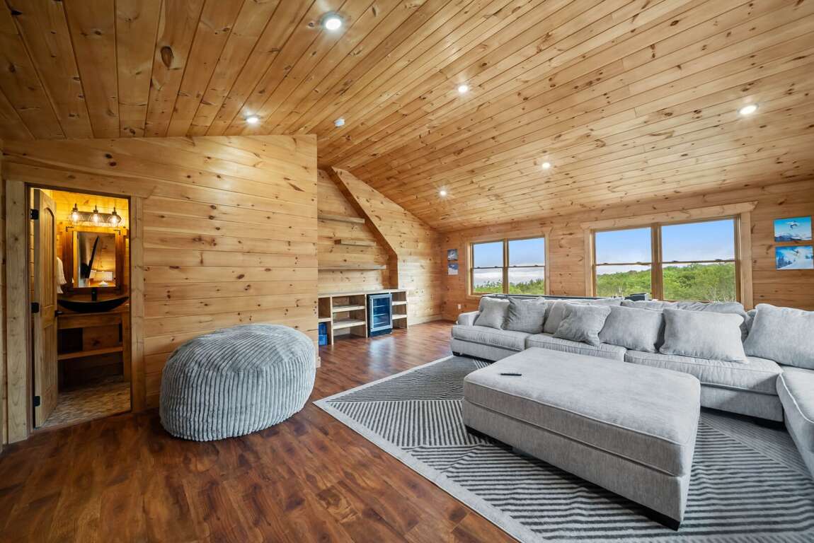 Oz Lodge is a spacious 7-bedroom retreat perched at the very top of Beech Mountain, offering breathtaking long-range layered mountain views and an unbeatable location just a five-minute walk to the ski slopes, the popular 5,506’ bar, and the iconic Land of Oz walking trail. In the warmer months, Beech Mountain Resort comes alive with mountain biking trails, scenic lift rides, and live music at the outdoor concert stage. With room for up to 22 guests, this home is ideal for large families or groups looking to enjoy a true mountain getaway year-round.
