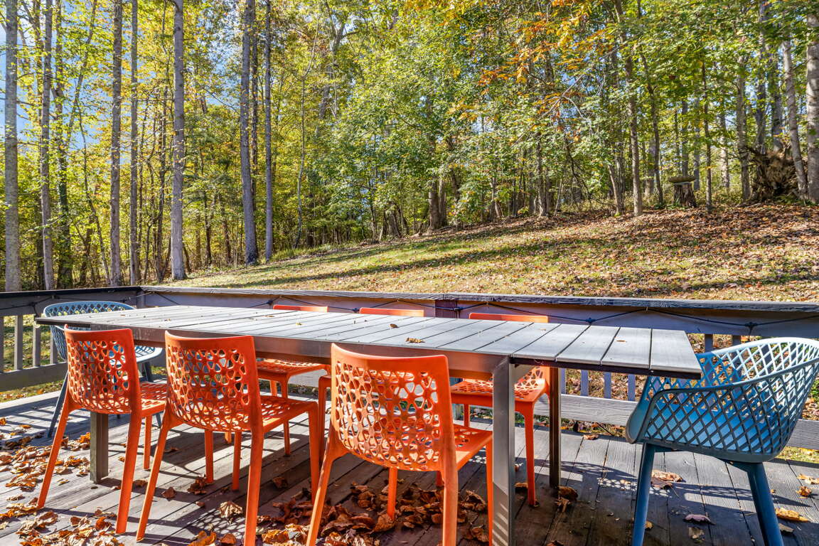 Set against a backdrop of a wooded, neighborhood cul-de-sac, Hill Top Tree House offers a spacious four-bedroom retreat ideal for accommodating a large family or group getaway. The property exudes neighborhood charm, providing a sense of community and warmth. The open living area with a wood fireplace and large dining table creates an inviting space for gatherings. Guests can enjoy great views of the backyard, perfect for wildlife sightings, adding an element of natural beauty to the experience. The fully-equipped kitchen and large outdoor dining table cater to a desire for freedom, allowing guests to prepare meals and dine al fresco. With its tranquil setting and opportunities for wildlife encounters, Hill Top Tree House provides a perfect escape for those seeking a peaceful and rejuvenating retreat.
