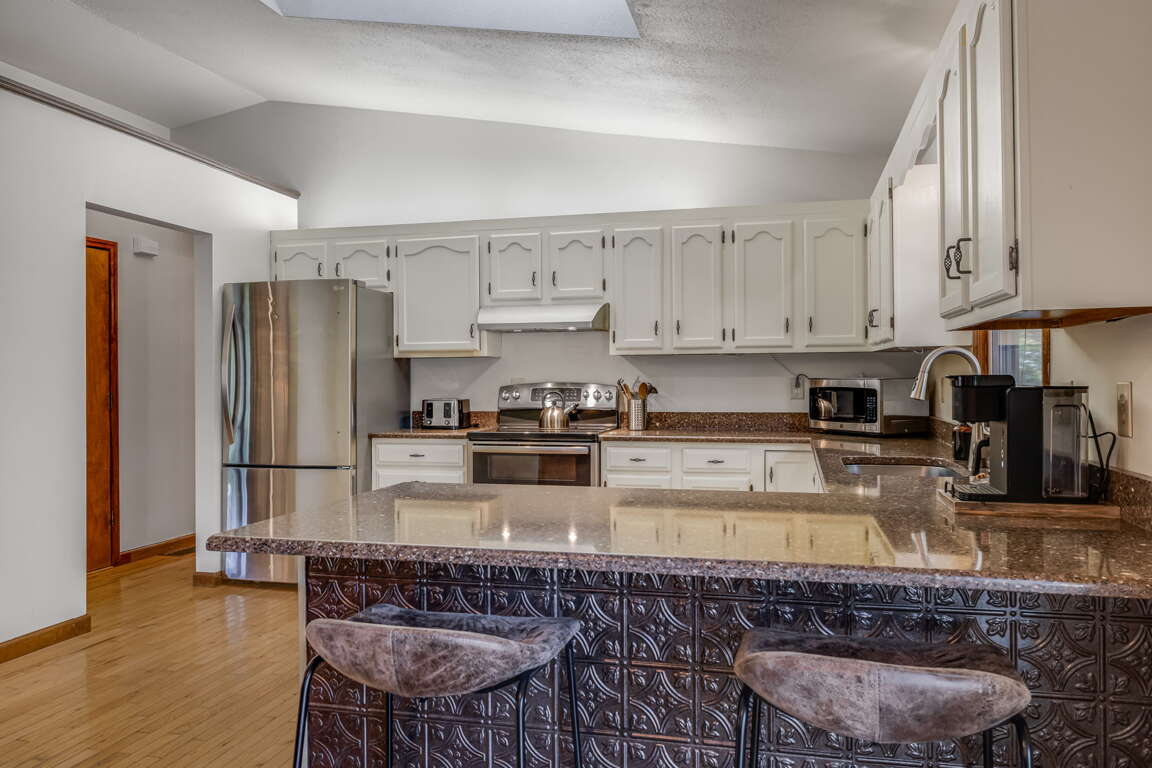 The property's accommodations include four bedrooms and four full baths, featuring a range of sleeping arrangements to comfortably accommodate guests. The bedroom configurations consist of two bedrooms on the main level, each with a king bed and attached full bath, one bedroom with a queen bed and a shared full bath, and another bedroom with two twin beds. In addition, the lower level rec room offers a sleeper sofa for extra sleeping space. The bathroom amenities include a jetted tub in the primary bedroom, ensuring a luxurious and relaxing experience for guests. With these arrangements, guests have the freedom to choose their preferred sleeping accommodations, whether it's a private ensuite or a shared full bath, providing flexibility for different group sizes and preferences.