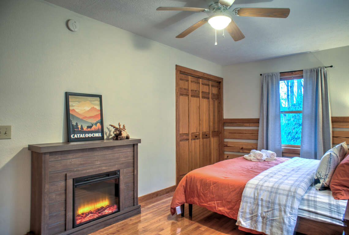 Make your getaway to the Toasty Marshmallow, featuring three levels of living space and a hot tub with an amazing mountain view. Serene surroundings envelop this home, providing absolute privacy for your getaway. Watch the early morning mist cascade through the valley below. There's plenty of space at this beautiful cabin for entertaining your whole group. Relax by the electric fireplace on the plush couches and enjoy your favorite shows. The fully equipped kitchen has everything you need to make your favorite dishes - nothing tastes better than a home-cooked meal shared with friends and family. Head upstairs to find two spacious bedrooms and a loft area perfect for game night. The lower level is perfect for kids who need their own TV room and space to spread out, and the addition of another electric fireplace makes for a cozy situation. While the kids are entertained, you'll be enjoying Toasty Marshmallow's mountain view. The covered deck allows you to discover the ever-changing vista no matter what the weather. Of course, there's also a fire pit and cornhole for your evening entertainment... don't forget to pick up marshmallows and a bundle of firewood on the way!