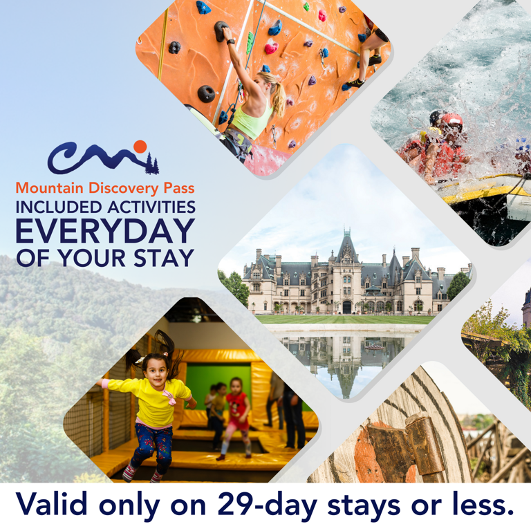 Each reservation staying 29 days or less includes our exclusive Mountain Discovery Pass, which includes one Biltmore Estate pass, in addition to a ticket for other seasonal attractions that are sure to delight and entertain! This special offer is only available with Carolina Mornings and is our special gift to you during your stay. (Ticket(s) must be used during your stay. Terms apply, please inquire for more information.)