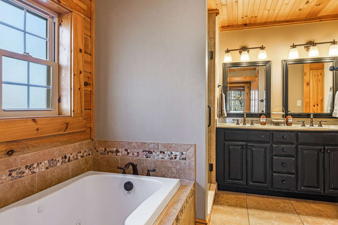 Main Level: Main Suite/Bedroom One - King Bed, Attached Full Bath w/ Jetted Tub; Half Bath