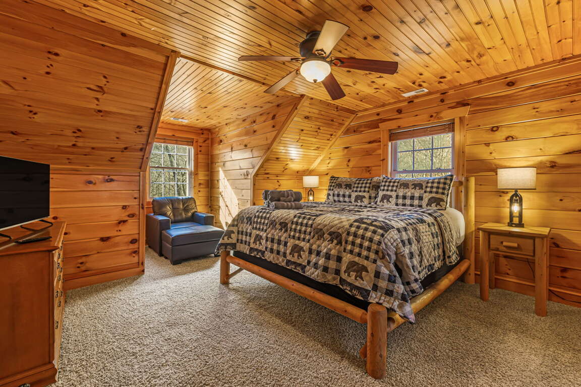 A row of rocking chairs on the wraparound deck provides a front-row seat to wooded mountain views and the calming sound of the stream in the valley below. For groups that enjoy friendly competition, corn hole and a ping-pong table offer hours of entertainment. After a day of exploring, the six-person hot tub provides soothing relaxation, while the primary suite on the main level offers a private sanctuary complete with a jetted tub in the en suite bath. With so many inviting ways to unwind, Wildcat Lodge is a place you will never want to leave.