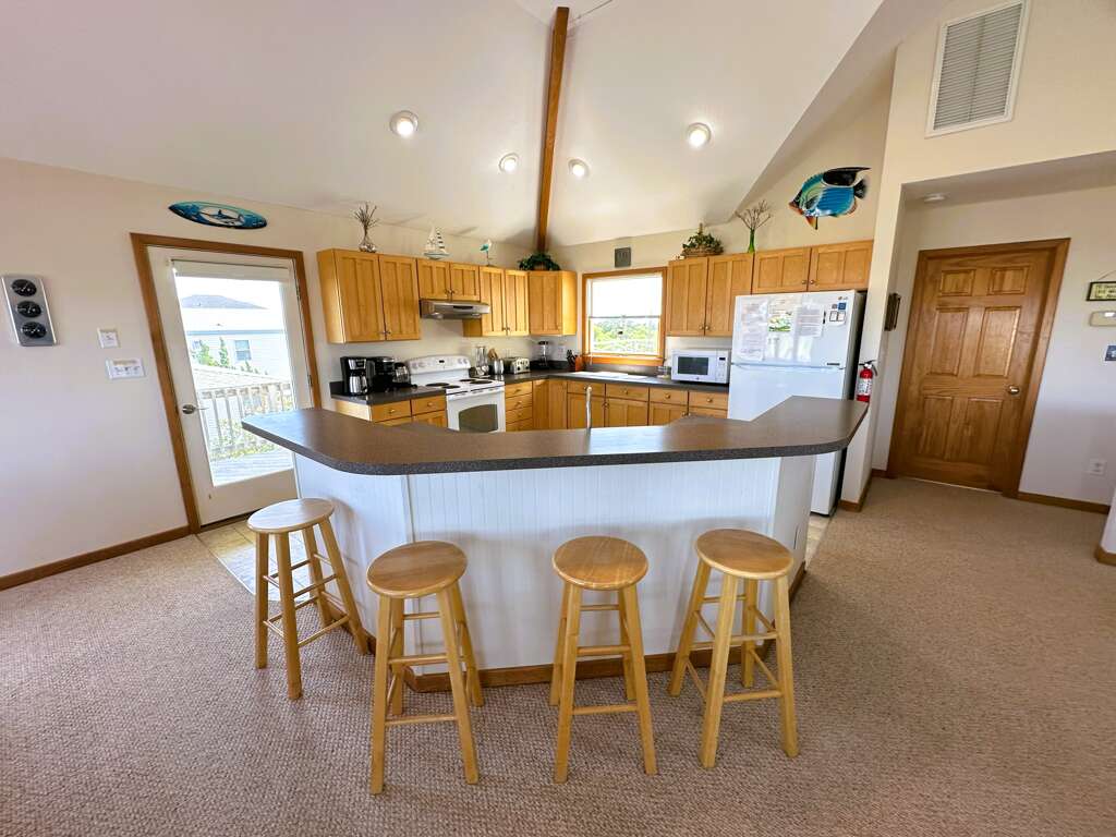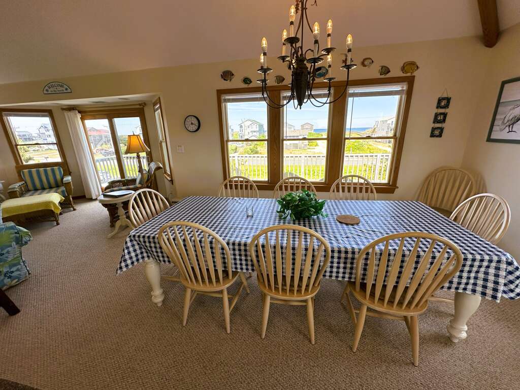 Decorated with care, the home features expansive wrap-around decks in the iconic “Outer Banks” style, perfect for soaking in the breathtaking ocean views and the tranquil surroundings. Bordering the Cape Hatteras National Seashore Park, the home offers a serene and private escape. Public beach access is just a few houses south at Jay Street or 176 yards away at June Street, making it easy to enjoy the sand and surf.