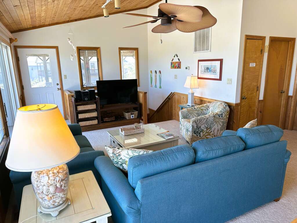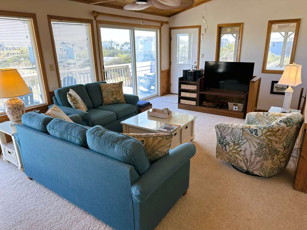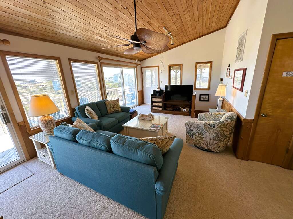 Expansive living area with TV/DVD/VCR and access to sun deck with ocean views