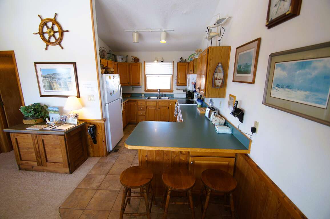 Fully equipped kitchen with breakfast bar and seating for 3