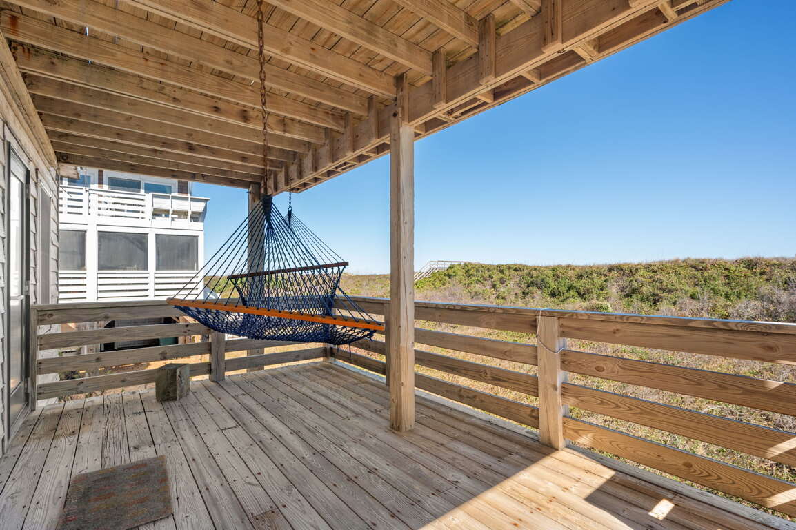 You'll fall in love with the Gillis home, located in the high end Sanderling Community and the beautiful ocean views. This classic oceanfront Outer Banks home features four spacious bedroom and 2 full baths. Plenty of decking with numerous picnic tables and 2 hammocks to relax and enjoy the sweet OBX sounds and breezes. There is also a relaxing oceanfront den and sound-side screen-in porch for your family's enjoyment, The community pool and and sound access are both within walking distance and your family will thank you for this lovely stay in this Sanderling Resort Community.