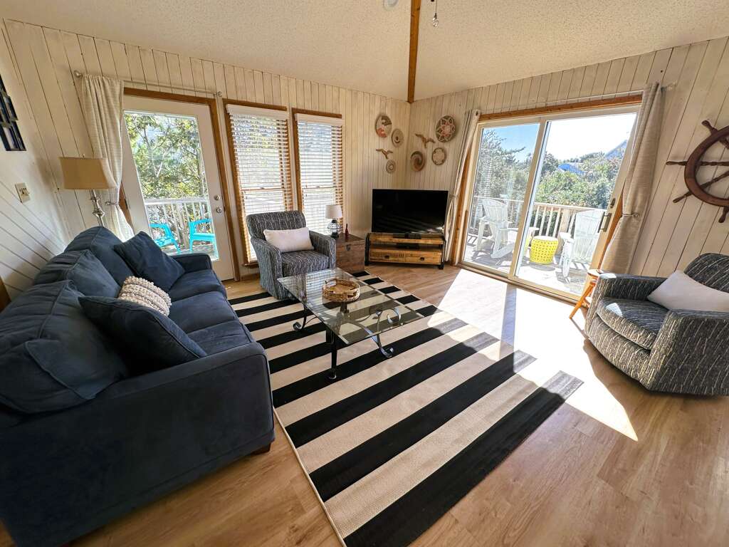 Welcome to Happy Go Ducky, a bright and cheerful 4-bedroom, 2.5 bathroom home located right in the middle of charming Duck, North Carolina. This open-concept retreat is perfect for families looking to relax, unwind, and entertain in style. With expansive decks, there’s plenty of room to soak up the sun or enjoy a quiet cup of coffee as the day begins.