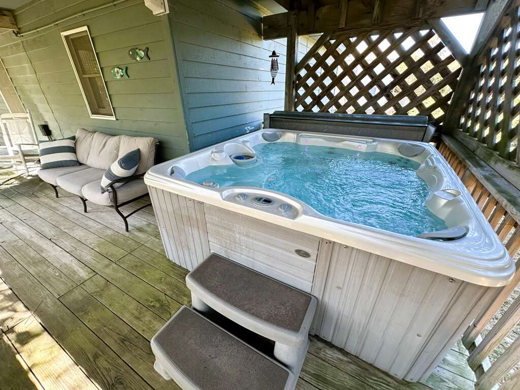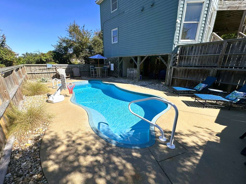 In the evenings, gather on the screened-in porch and enjoy the coastal breeze without the bugs. Spend the afternoon lounging by the heated private pool, sipping cocktails at the tiki bar, or taking a short walk to the nearby beach access for a full day of sun, surfing, and sand fun.
