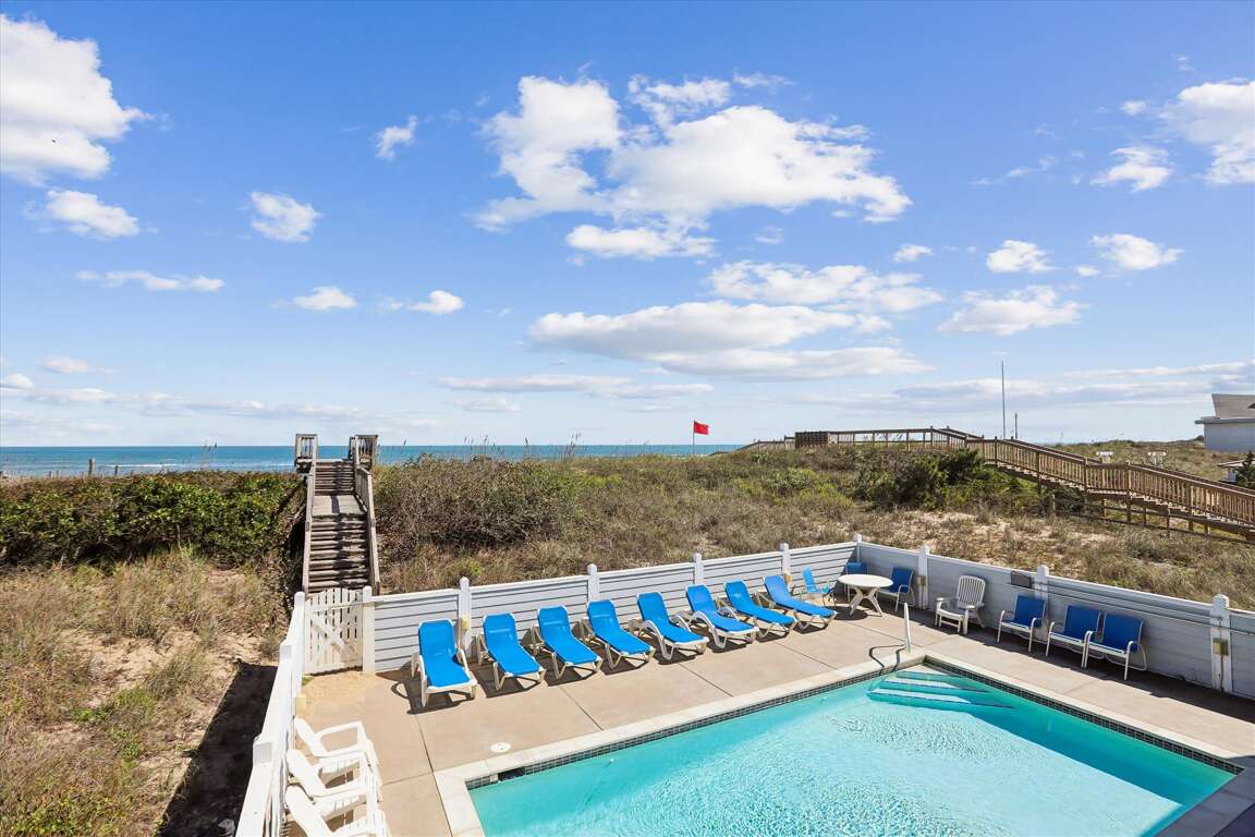 Explore the beautifully appointed SS2-Captains Lookout in Southern Shores, NC. This 7-bedroom, grand vacation home features a private pool, hot tub, grill, and much more.