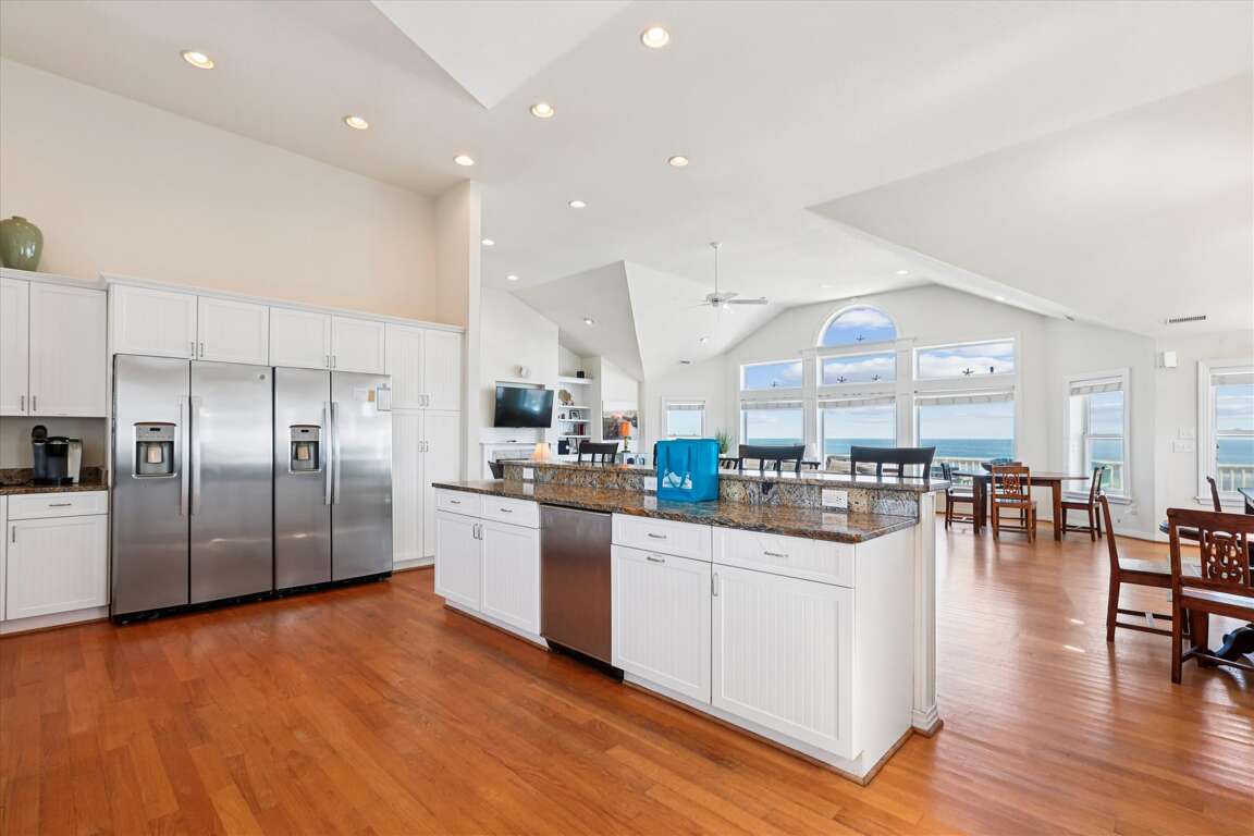 Welcome to your coastal paradise, where every room treats you to breathtaking ocean views! Step into the spacious living room, featuring soaring vaulted ceilings, a flat-screen TV for movie nights, a top-notch stereo system, and a cozy gas fireplace that sets the perfect ambiance.Gather around the dining room table that comfortably seats 10, complemented by two charming smaller tables for additional seating. The gourmet kitchen is a chef's dream, complete with stunning granite countertops, high-end stainless steel appliances—including a double oven, two refrigerators, and two dishwashers—and a breakfast bar with seating for four, perfect for casual bites and morning coffee.Retreat to the luxurious master bedroom, featuring a king-sized bed and an en-suite bathroom that will make you feel like royalty, complete with a double sink, a relaxing whirlpool tub, and a separate shower. Plus, there's a stylish half-bathroom with a pedestal sink for your convenience. This is more than just a space; it’s your ultimate getaway!