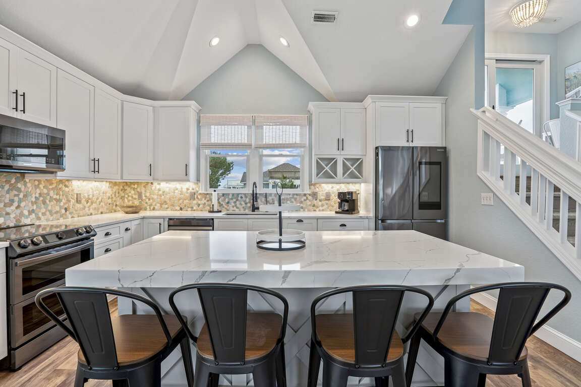 Spacious & Inviting: Experience a bright and open floor plan designed for relaxation and fun. The top floor boasts a large kitchen with a water filtration system for ice and drinking water, a cozy living and dining area ideal for family gatherings, and a luxurious Master Bedroom Suite.