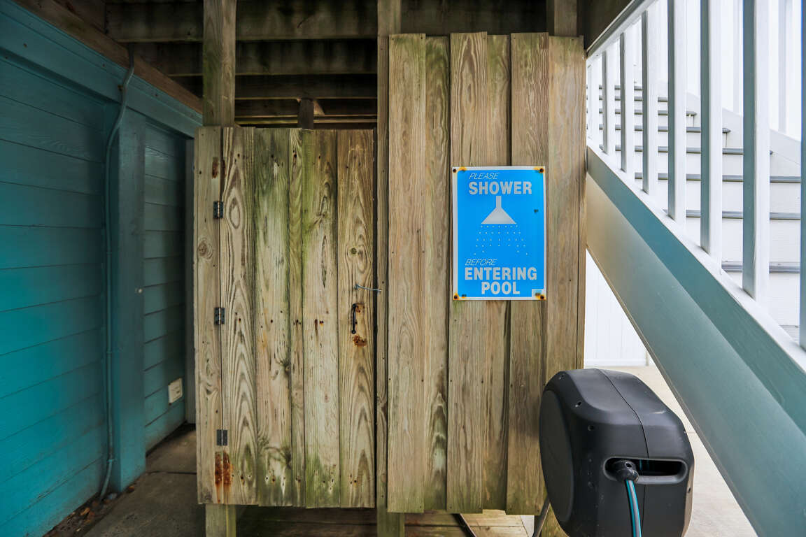 Enclosed outside shower.