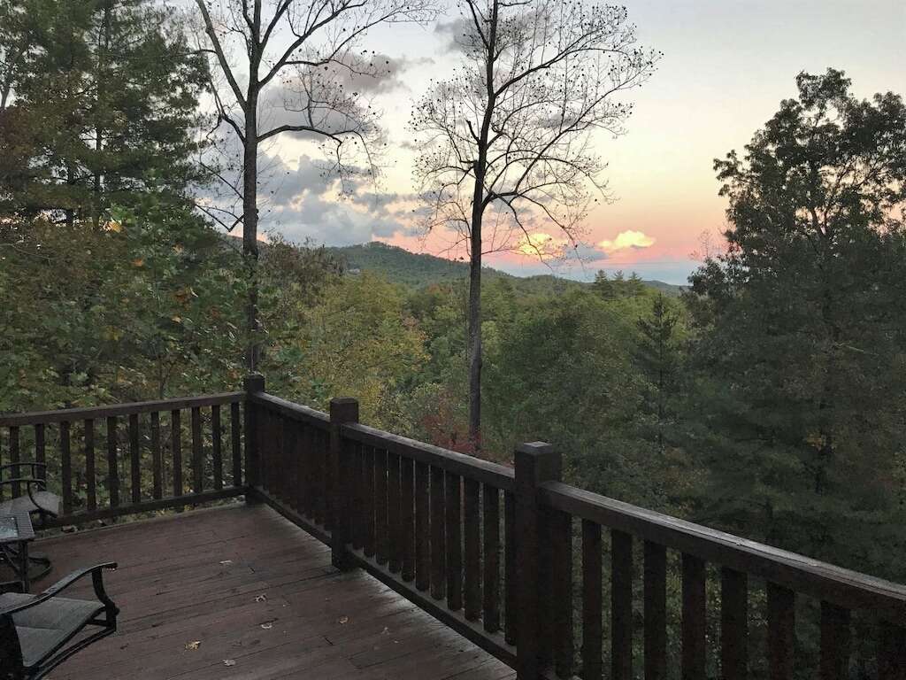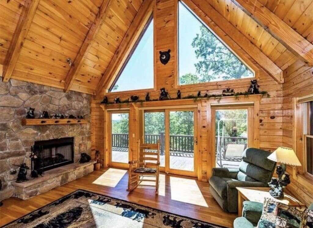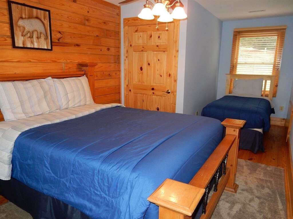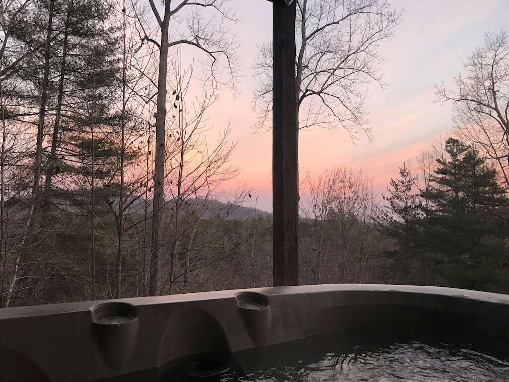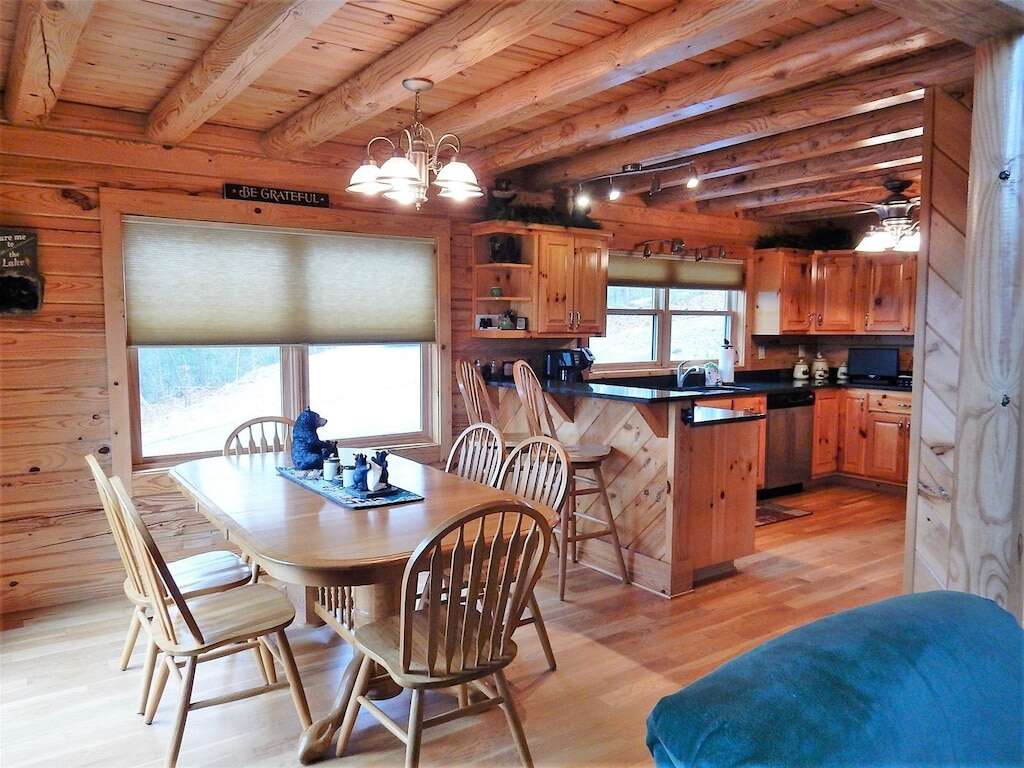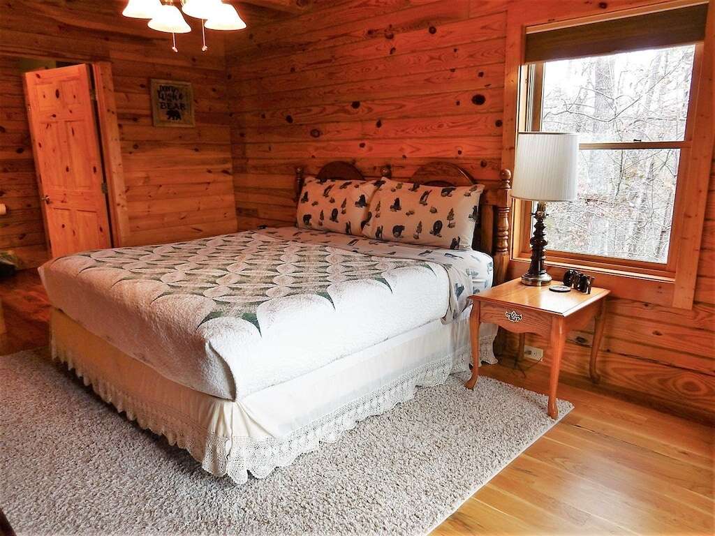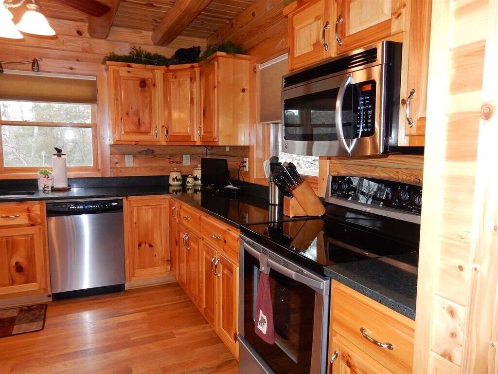 Outside, enjoy the hot tub, gas fire pit, gas grill, rocking chairs, and large deck. Wildlife is abundant, including deer, assorted birds, rabbits, wild turkey, fox, and the occasional black bear. The cabin has a mountain lodge feel. The views are best in the winter, but you will feel right at home at Appalachian Sunrise no matter what time of the year you choose.