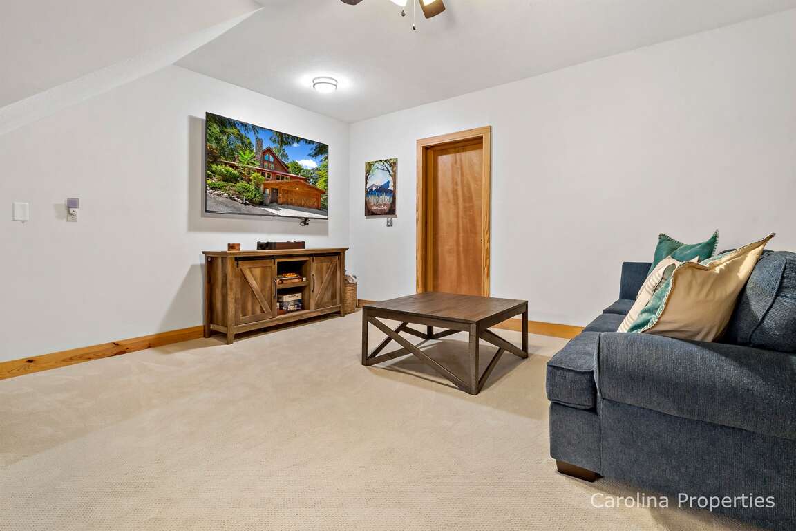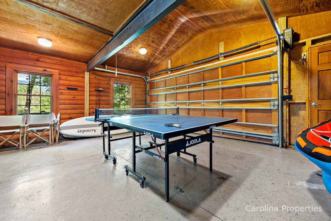 Outdoor Spaces Enter the home two steps up to the covered front porch; it overlooks the parking area and is a broad, spacious, comfortable seating area. Perfect for waiting on others in your group or relaxing with a morning or evening beverage. It’s an ideal place to curl up with a good book or magazine. Off the sunroom is an upper-level deck with a peaceful, gorgeous view, a table, and seating for four. Descend the stairs to the lower deck, where you’ll find an outdoor television and an open strolling deck for talking, walking, and enjoying the lake and mountain view. There is also a brand new hot tub. The walk to the lake is long and steep, so take a bag, cooler and supplies with you. You’ll find a gorgeous gazebo by the water, a floating dock, two paddleboards, and two kayaks.