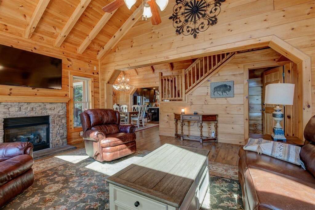 Welcome to Buffalo Lodge at Lake Lure! Relax in this private and luxurious log cabin with two full levels of living, perfect for two families! Amazing views from both the upper and lower wrap-around decks. Perfect for entertaining! Four bedrooms, 3.5 baths, a custom queen gel sleeper sofa, and a twin sleeper chair! Two fully-equipped gourmet kitchens, two great rooms with surround sound, and large smart TVs. There is tons of patio furniture with a fire table, porch swings, rocker gliders, a ping pong table, and a brand new HOT TUB on the lower deck! Enjoy roasting marshmallows around the large wood-burning fire pit in the fenced backyard. Convenient access to Lake Lure, local restaurants, grocery stores, Chimney Rock Village, and so much more!