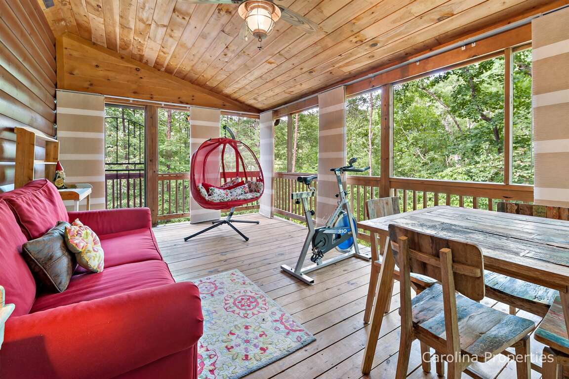 The living space is expanded via a large, beautiful, enclosed porch. There is also a spacious open deck with mountain views in winter, a cool treehouse vibe in spring, and a bird's eye view of autumn leaves in fall.