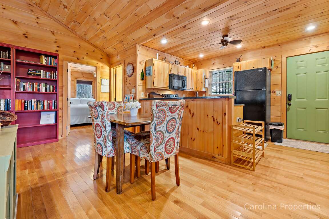 From the moment you step inside, you'll enjoy the warm embrace of gorgeous wood floors, walls, and ceilings throughout. The golden-timber tones provide a perfect neutral backdrop to showcase the whimsical, colorful, eclectic furniture, doors, and accent pieces.