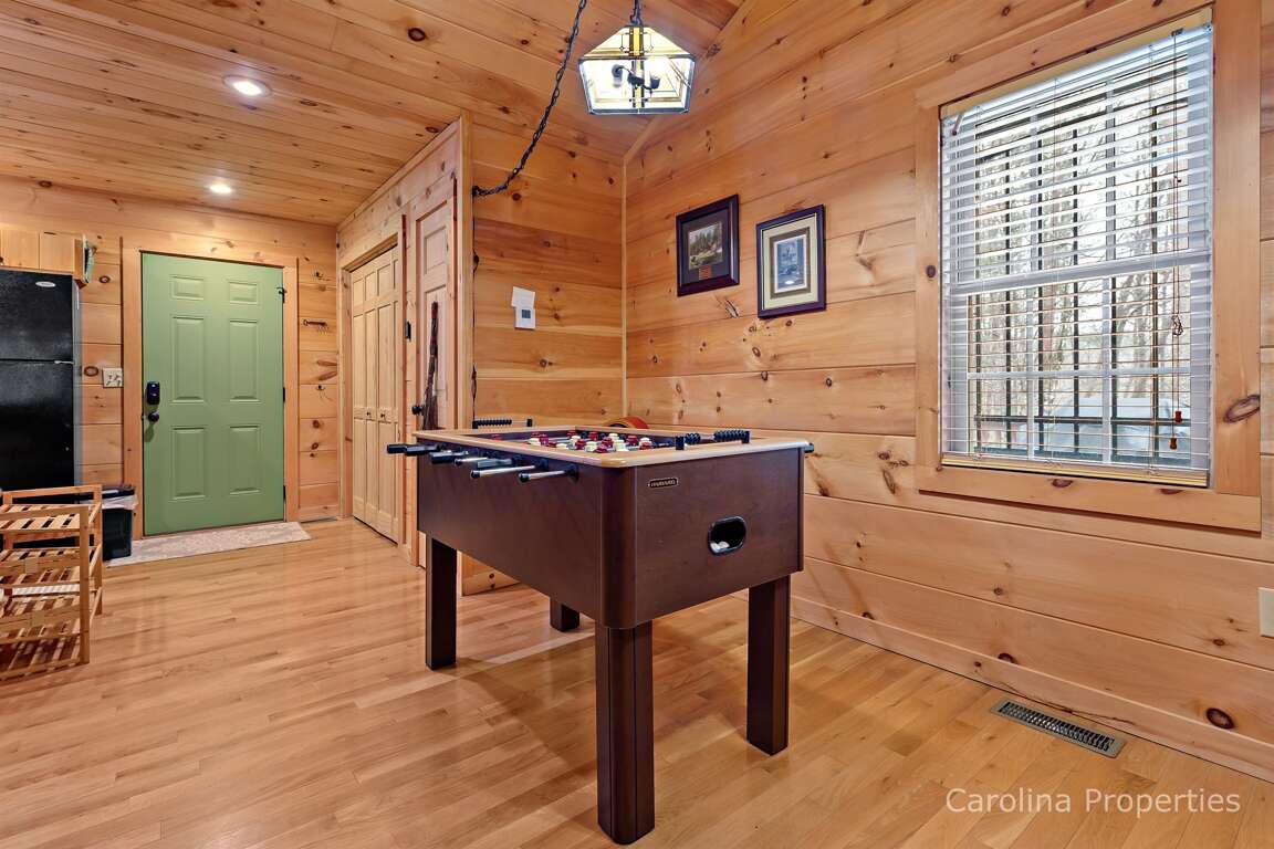 A fireplace, foosball table, internet-based television in each room, DVD players, a hot tub, fire pit, ambiance, and entertainment are abundant here at Hawks Terrace. There's even an exercise bike for fitness devotees!