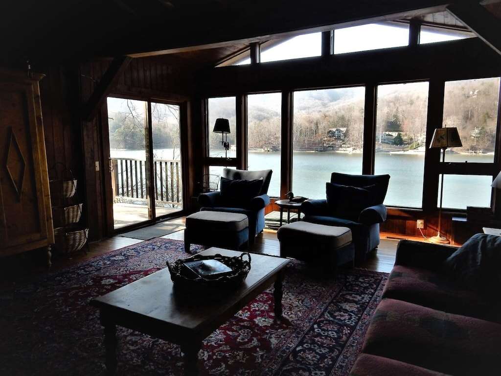 LAKE LURE LAKEFRONT ~ WI-FI ~ MOUNTAIN VIEWS ~ ROMANTIC ~ KING SIZE BED ~ BOAT DOCK ~ SCREENED PATIO ROOM
