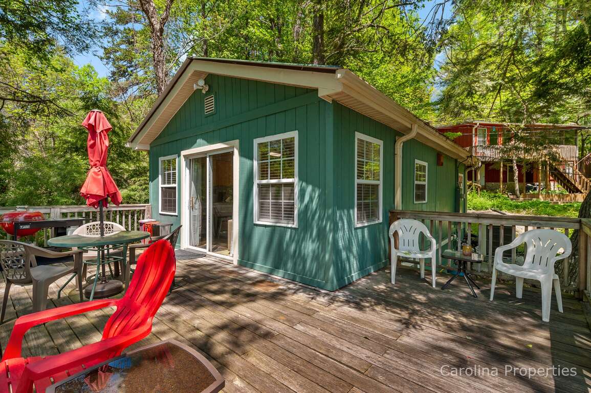 Offering two bedrooms and two baths. The upstairs bedroom has a set of twin bunk beds and a bathroom, a kitchen, a living room, and a fabulous deck. The downstairs has an open bedroom, a private bathroom, and a laundry area. The lower level and lower level deck are both slightly lower than standard ceiling heights. This small cottage was built long ago, but a recent remodel has made it very modern and simplistic. It's a stylish little property that is perfect for up to four people. There's parking for one vehicle, and from the parking area, it is approximately a 50-foot walk to the home. A modern, stylish appeal and a nice upper deck with super cool views are the main draws to this property.