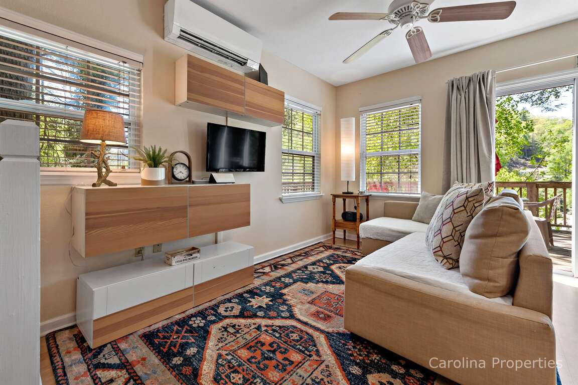 Southfork Cottage is conveniently located! Have plans to go to Biltmore? Want to spend a day at Chimney Rock State Park or the beach at Lake Lure? Looking to scout out some waterfalls? Want to shop in downtown Hendersonville? Excited to eat ice cream in Black Mountain? South Fork is a great little cottage to be your landing spot. It offers a comfortable stay in a very central location. This view has been described as "...fun, beautiful, peaceful, and stimulating all simultaneously!"