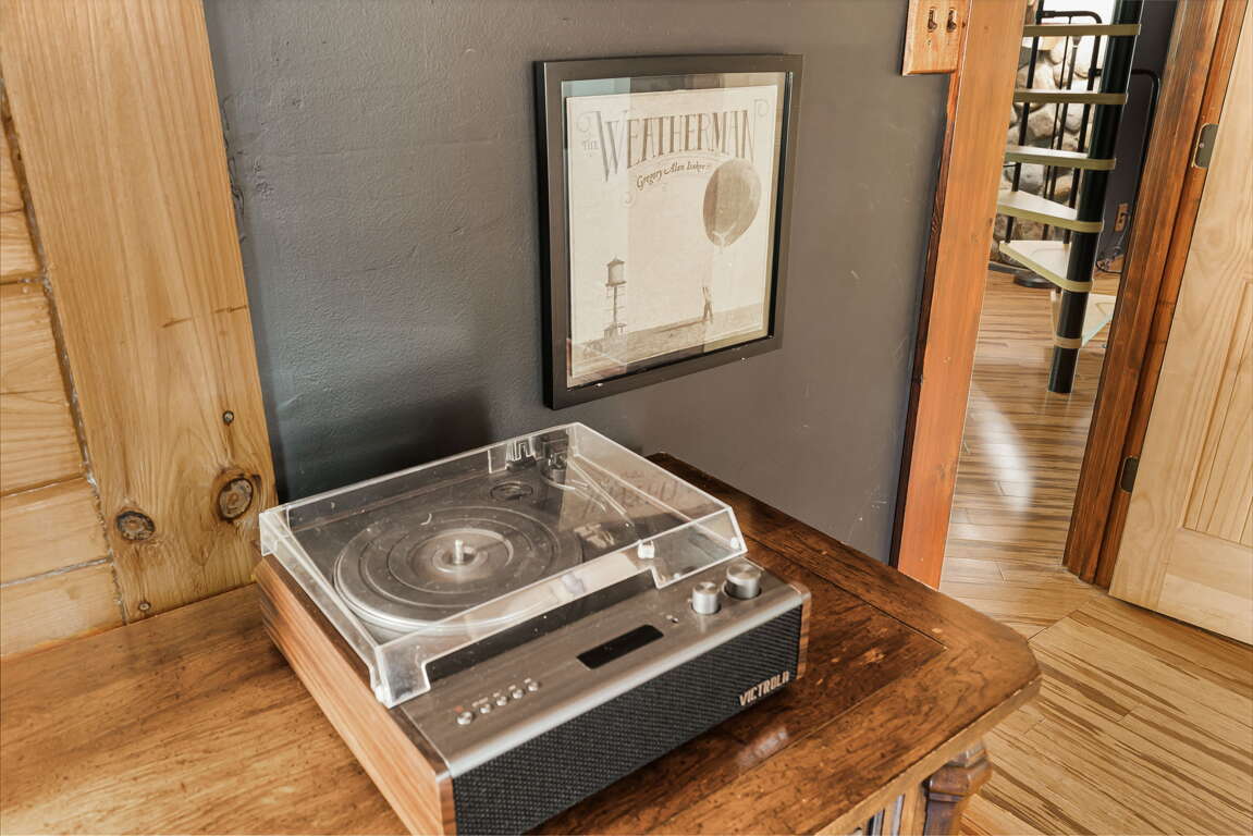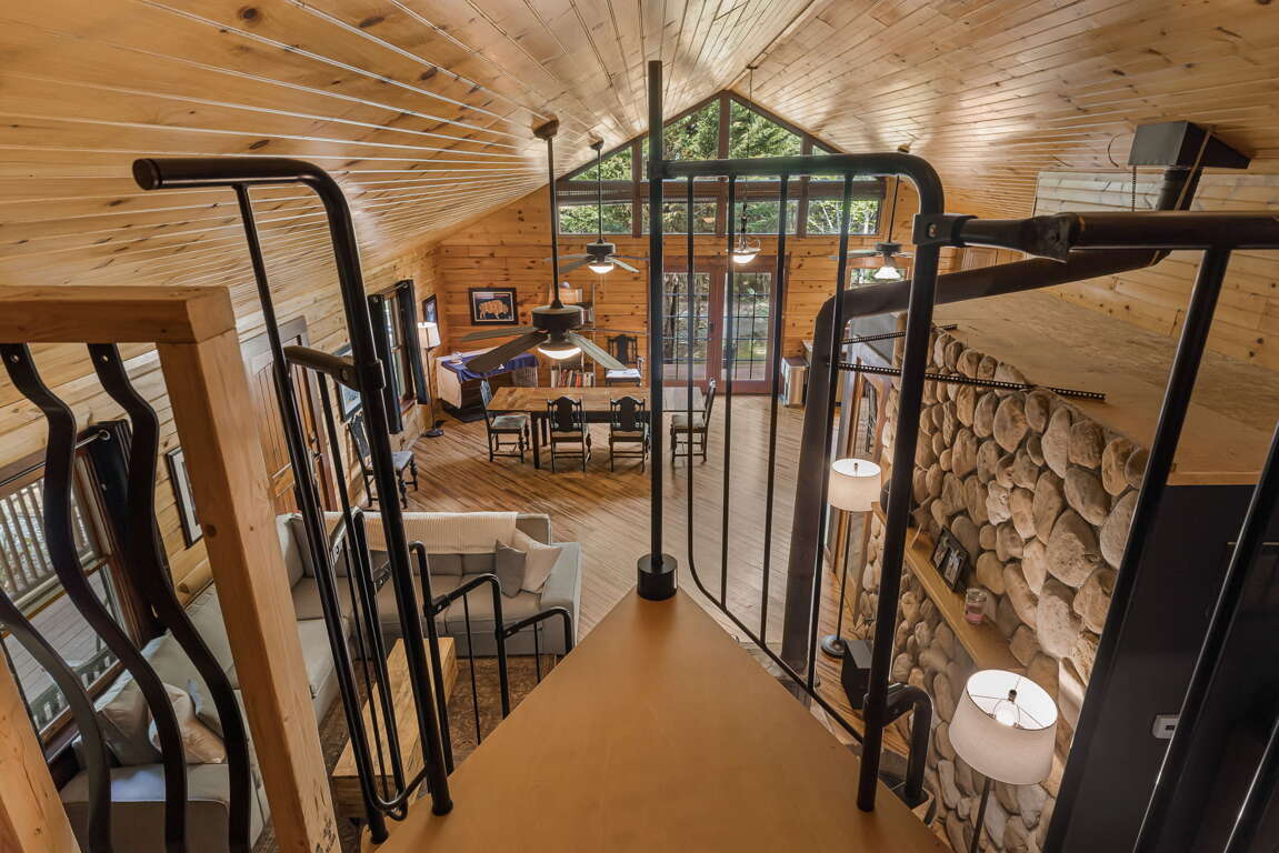 Up the spiral staircase is the bonus room with a built-in twin sleeping area and a desk with computer monitors for those needing to do some work while you're visiting.