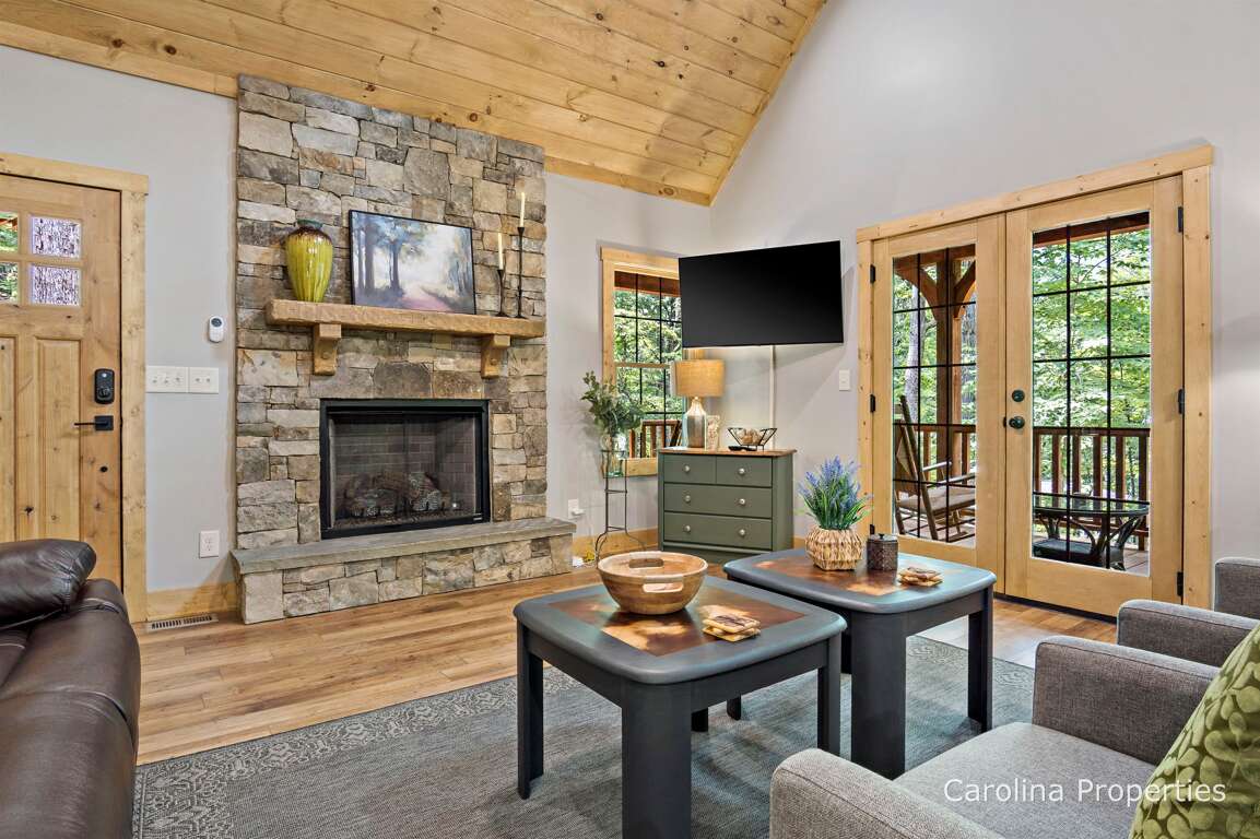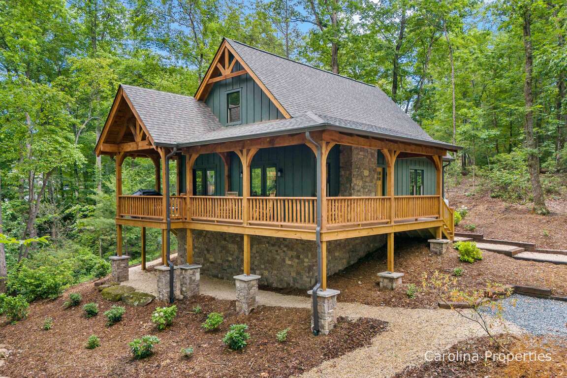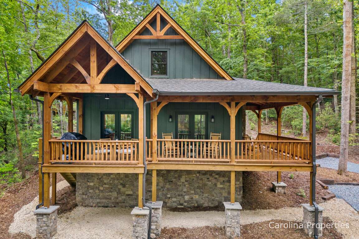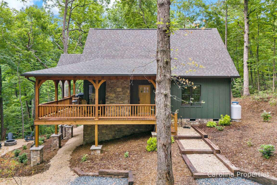 This delightful rustic-chic cabin is perfectly placed right across from Lake Lure Beach and Marina, just minutes from the downtown area of Chimney Rock Village and Chimney Rock State Park. It features a large gravel driveway offering easy parking.