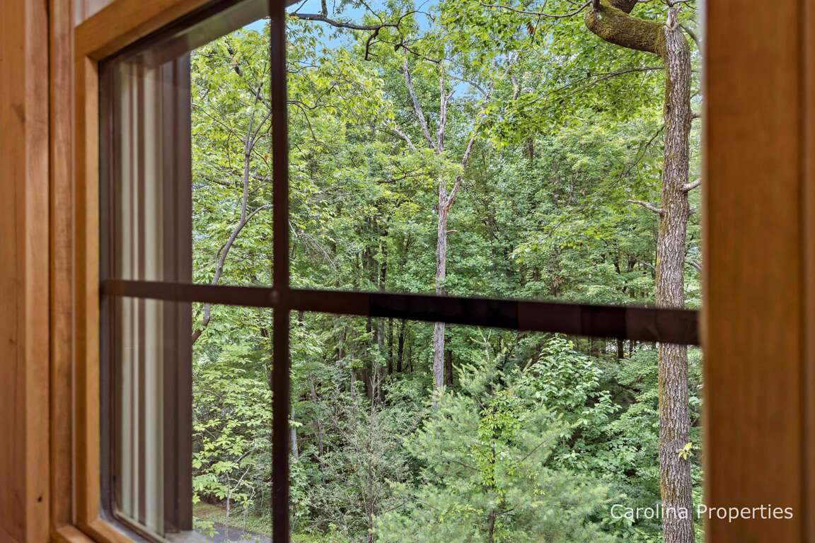- Upstairs king bedroom, boasting forest views all around, a bathroom with a lovely bathtub, and a cozy reading nook