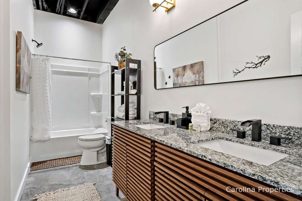 - Bedrooms: Two additional guest bedrooms, both furnished with queen beds and TVs, share a full bathroom complete with a bathtub.