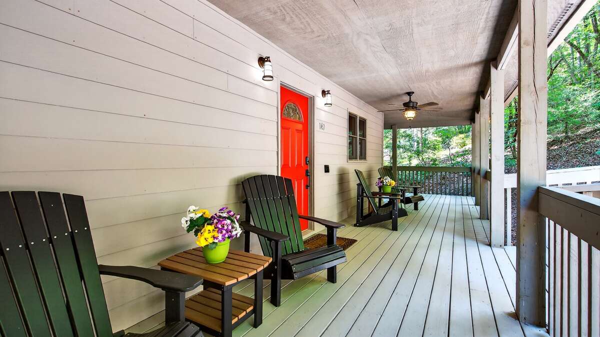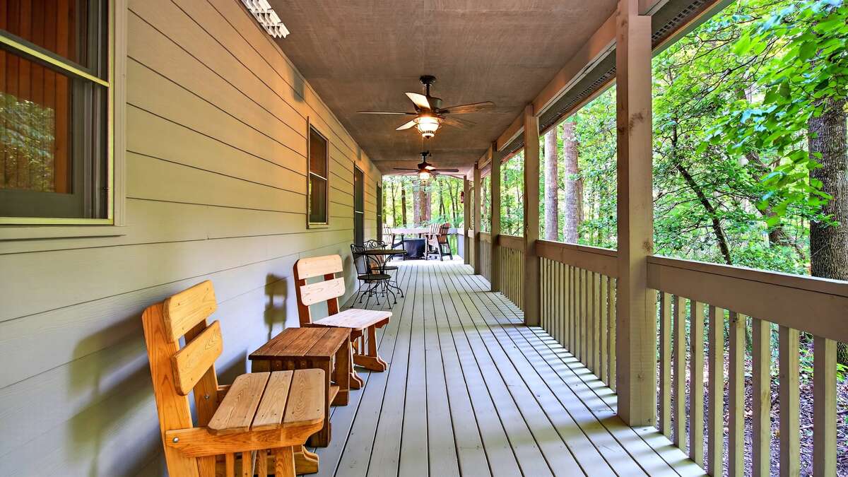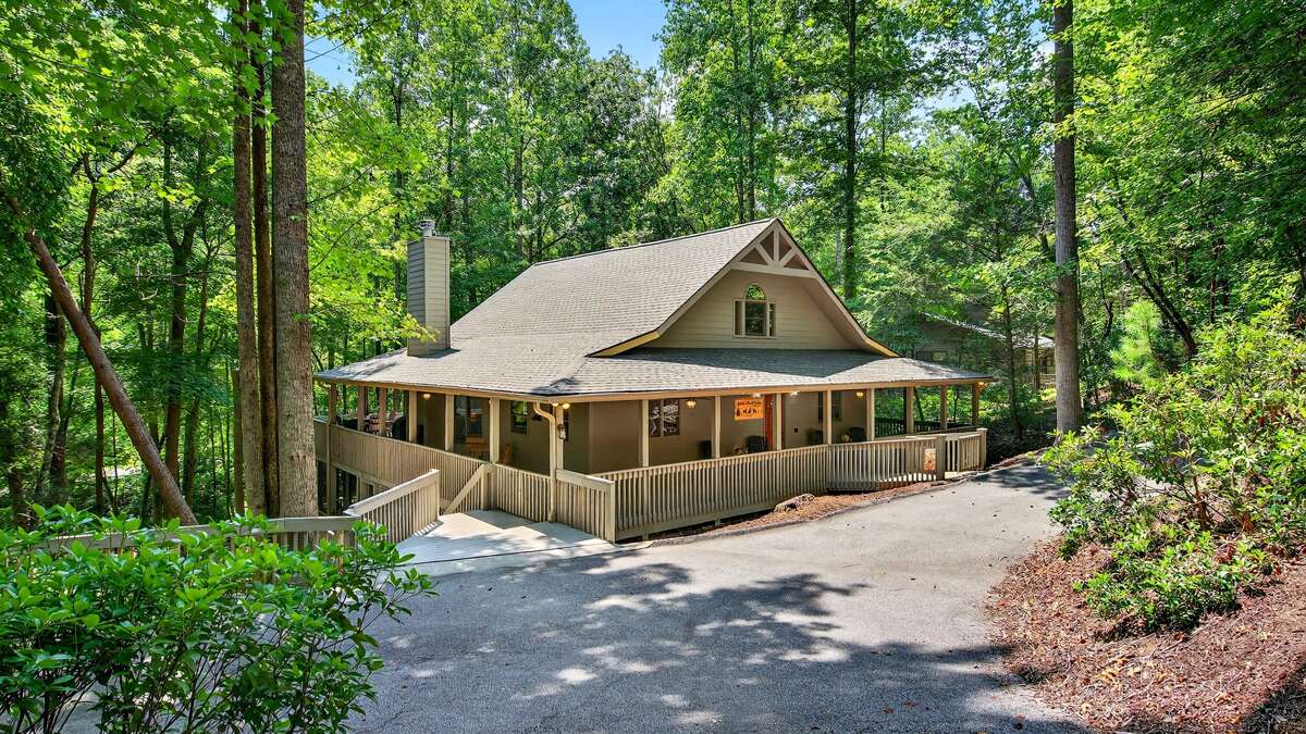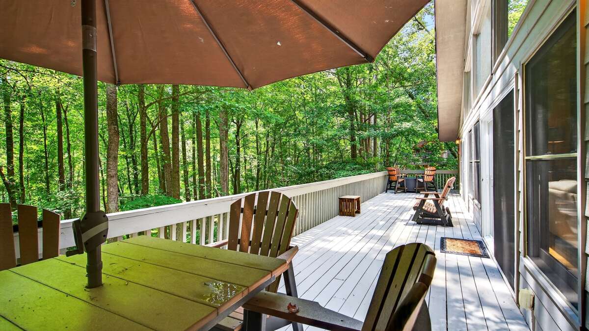 Tucked away in a peaceful forest setting, this charming home offers the perfect mix of rustic charm and modern comfort. Start your stay on the expansive wraparound deck, designed with cozy outdoor seating all around—ideal for relaxing with family, enjoying a morning coffee, or dining al fresco. The semi-steep driveway provides convenient parking for up to four vehicles.
