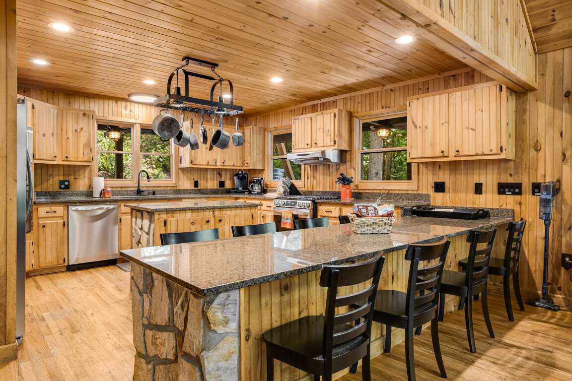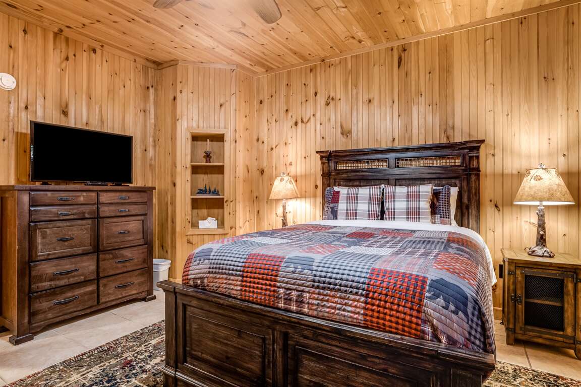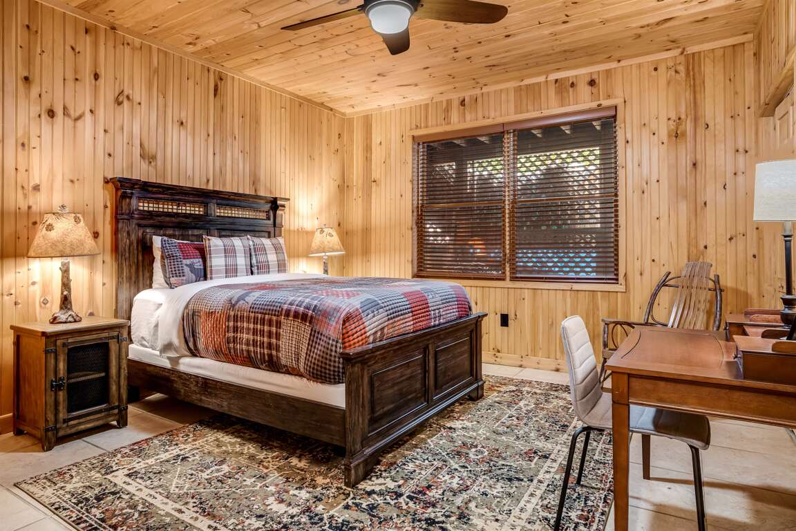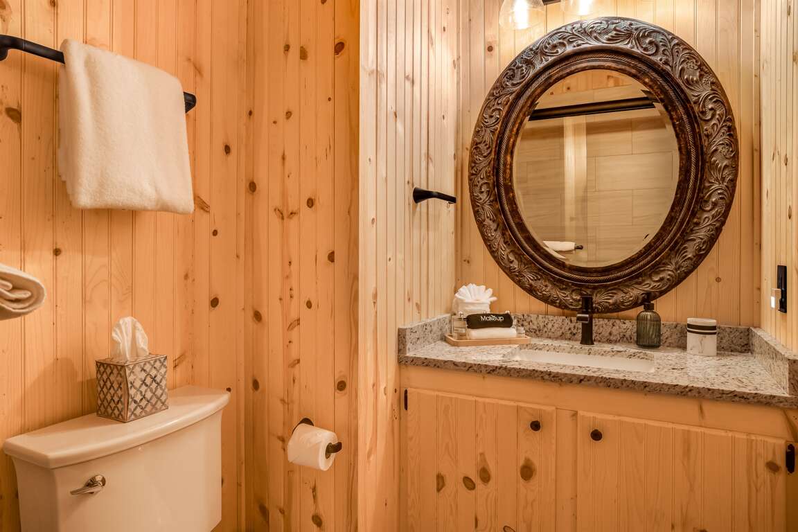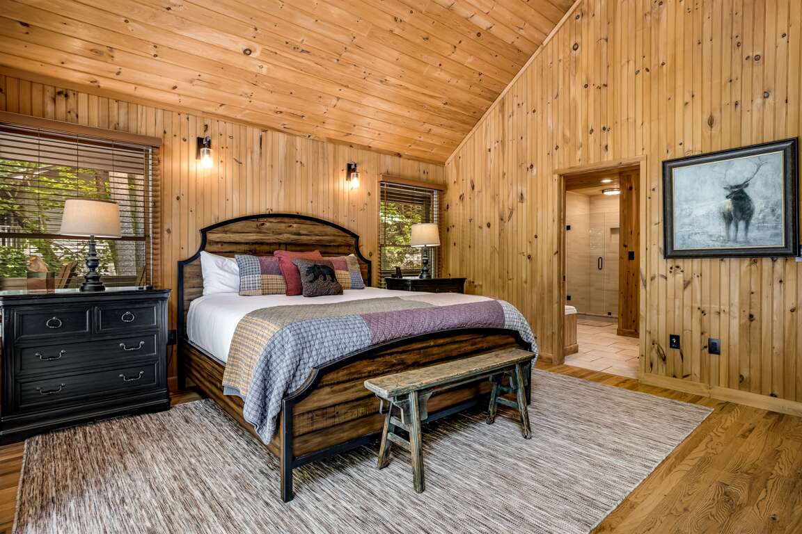 As evening sets in, gather around the fire pit to roast marshmallows, share stories, and enjoy the magic of the forest under the stars. Golden Creek Cabin provides a true sense of seclusion, all while offering a full range of resort-style amenities.