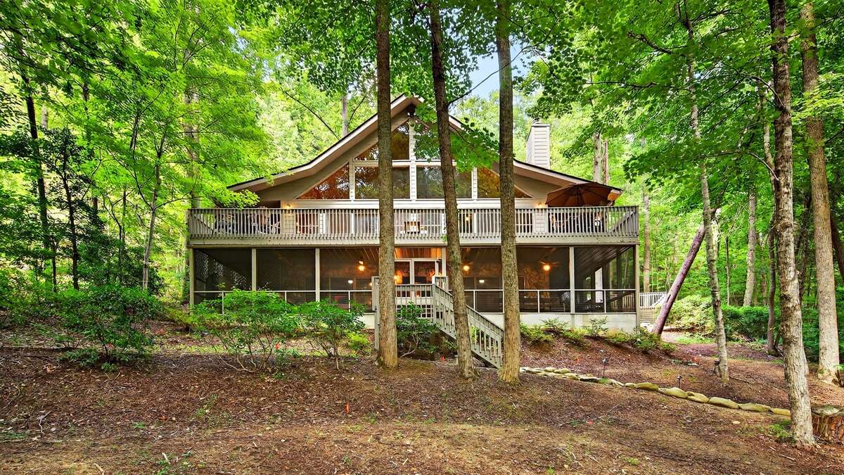 1703 sq ft vacation house, Golden Creek Cabin, located in Lake Lure, NC. Provides a range of amenities comprising Internet Access, AC, Fireplace, Pool, Hot Tub and a Grill.
