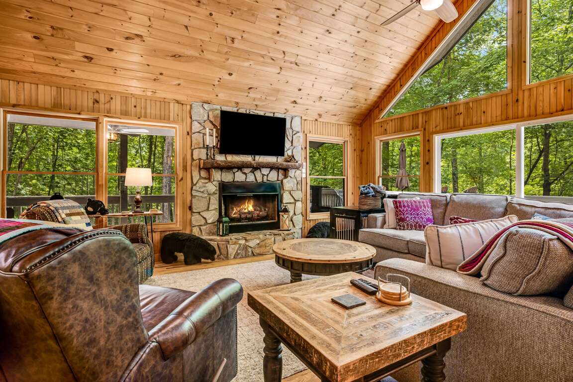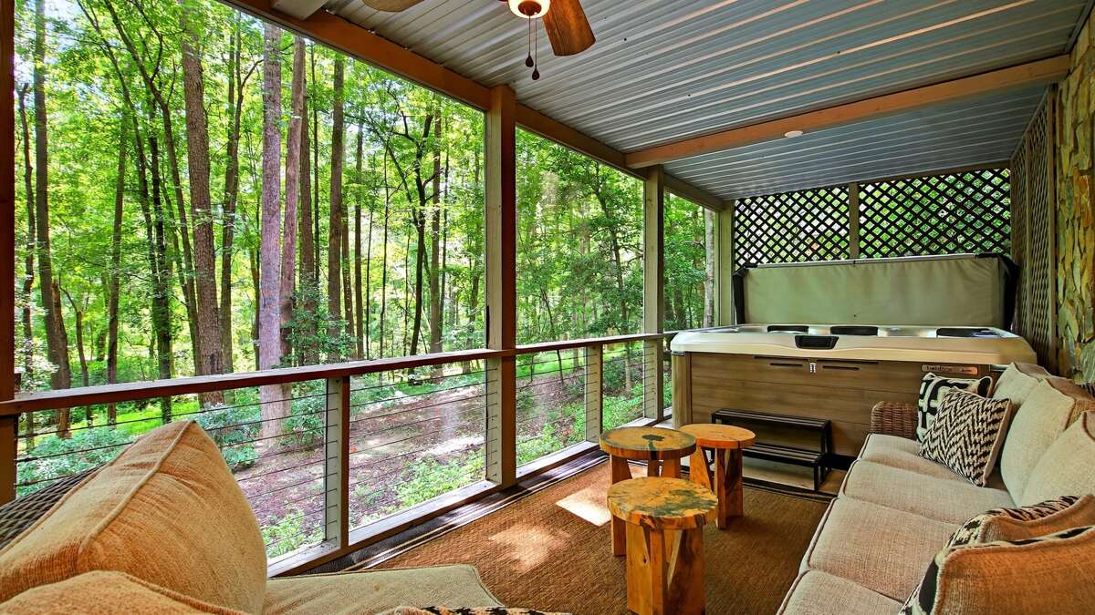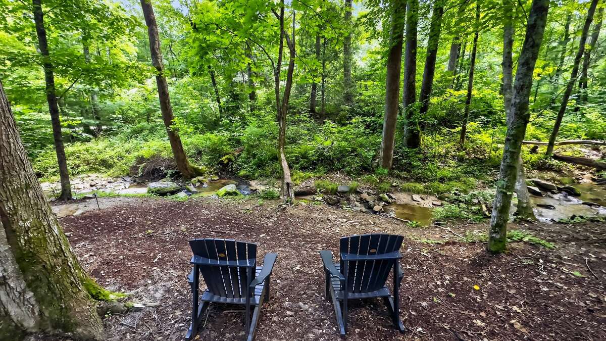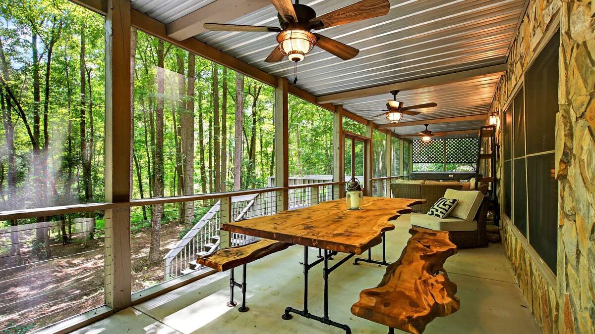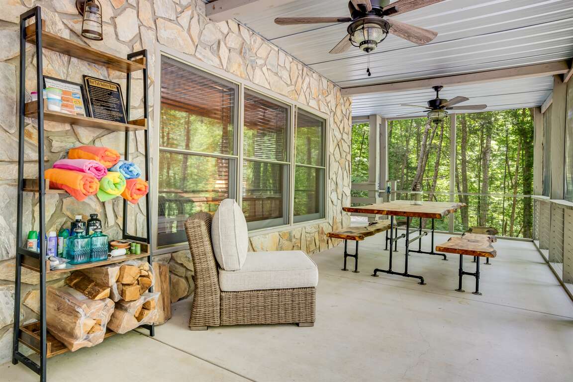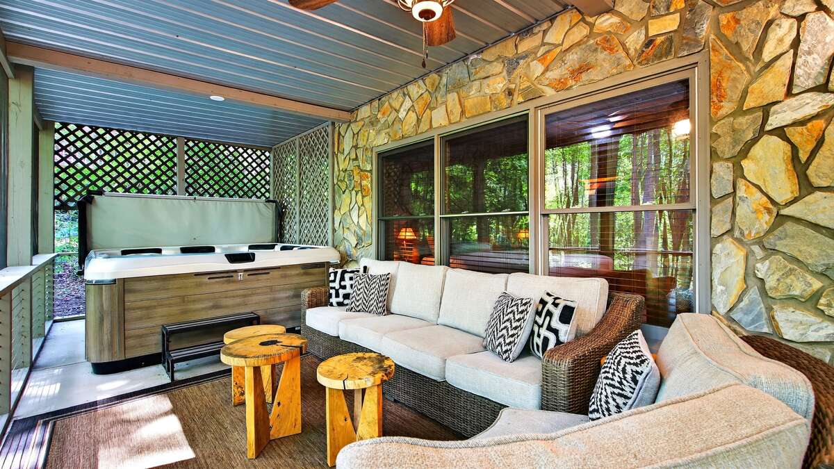 Step outside to the screened-in porch and enjoy a soak in the large hot tub, surrounded by plenty of comfortable seating for everyone. For a quiet escape, take a short walk down to the gentle stream, where you can savor a meal at the picnic table while listening to the calming sound of flowing water.