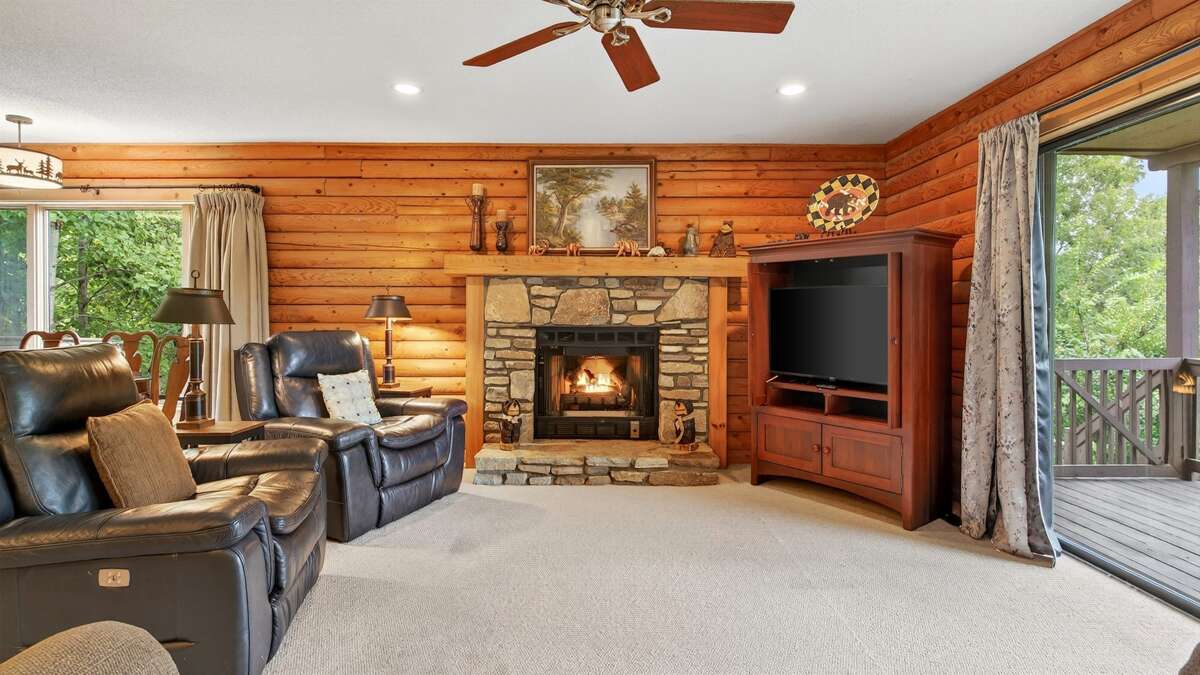 Step inside to a warm and inviting open-concept living area, where the living room, dining room, and fully equipped kitchen flow seamlessly together—perfect for entertaining or simply enjoying quality time. From the dining area, step outside onto the expansive wraparound deck, complete with both a gas and charcoal grill—ideal for cookouts after a day on the lake or exploring the Blue Ridge Mountains.