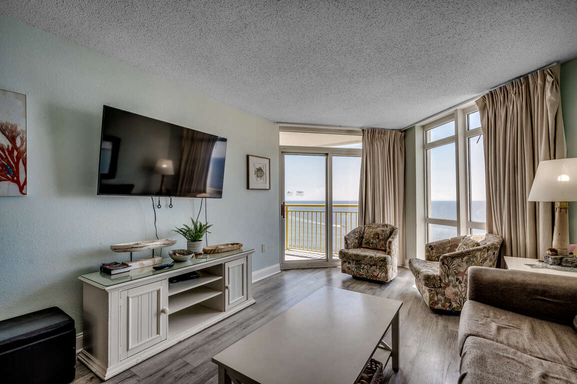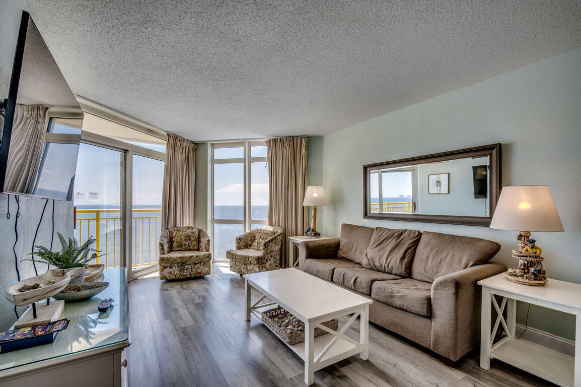 -Unrivaled Vistas: As a top-floor 3-bedroom residence, this unit boasts an unobstructed, panoramic view that sweeps across the entire Grand Strand beach and the Atlantic Ocean. The private oceanfront balcony provides a truly spectacular vantage point to watch both sunrises to the East and the coastal stretch extending far both North and South.