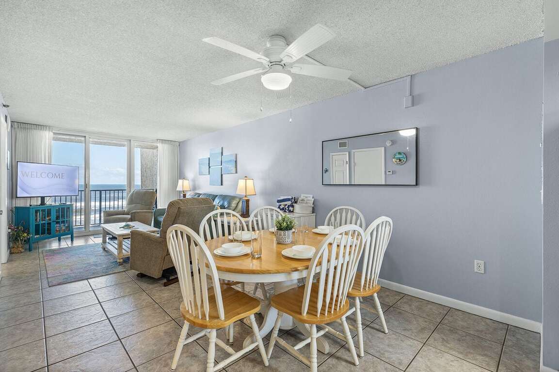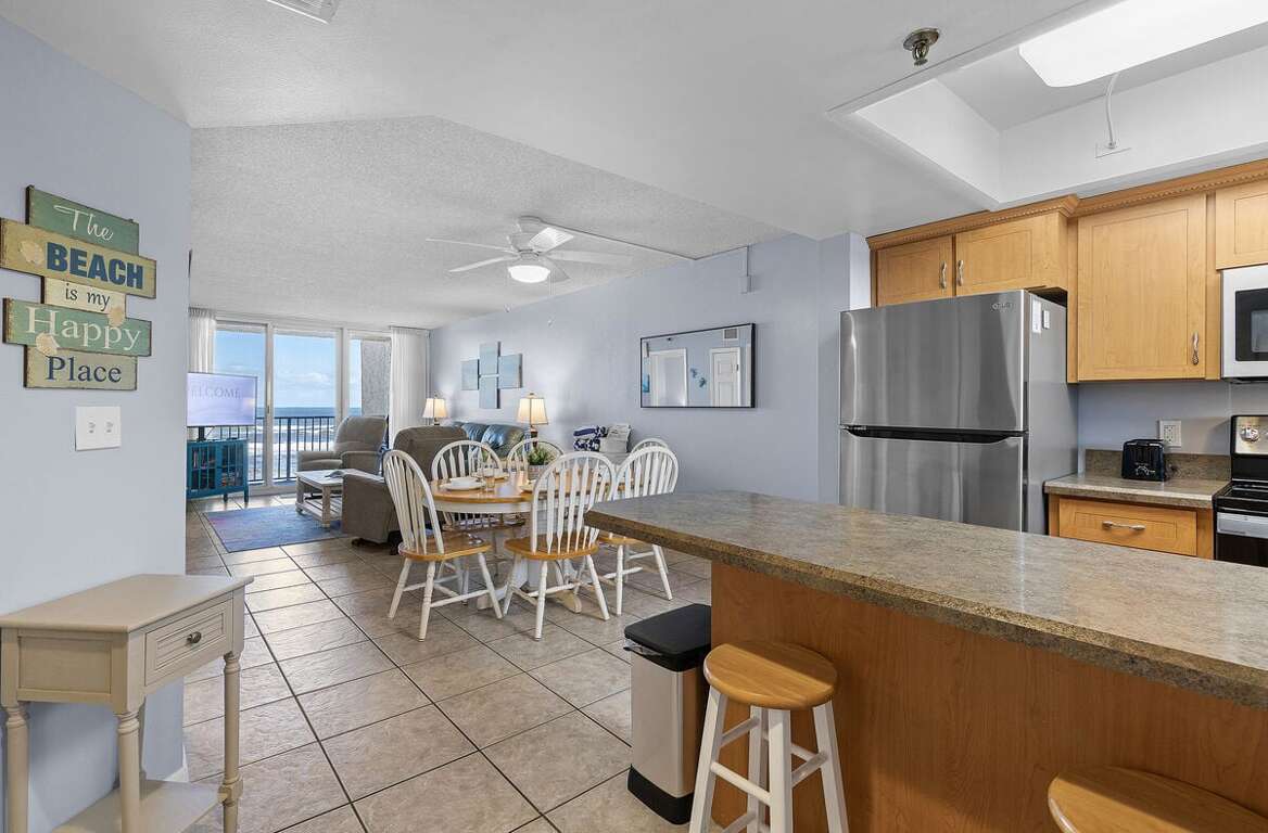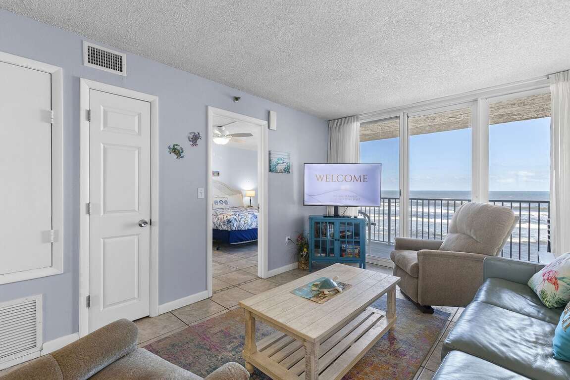 Step into laid-back beach living at this upgraded fourth-floor condo in Oceania Beach Club. Just steps from the beach and a short stroll to Flagler Avenue, this peaceful escape is perfect for families, couples, or snowbirds seeking sunshine and simplicity. Enjoy your morning coffee on the private balcony with a sea breeze, or relax inside with plush seating and plenty of space. Earth tones, beachy decor, and thoughtful updates make this condo a cozy haven after a day of surf and sand.<br />