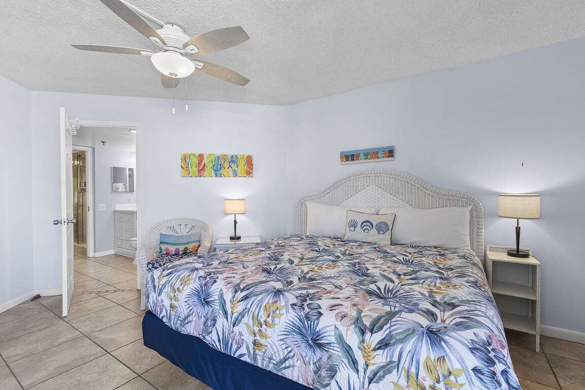 ► Primary Bedroom: King bed, ensuite bath, balcony access<br />
