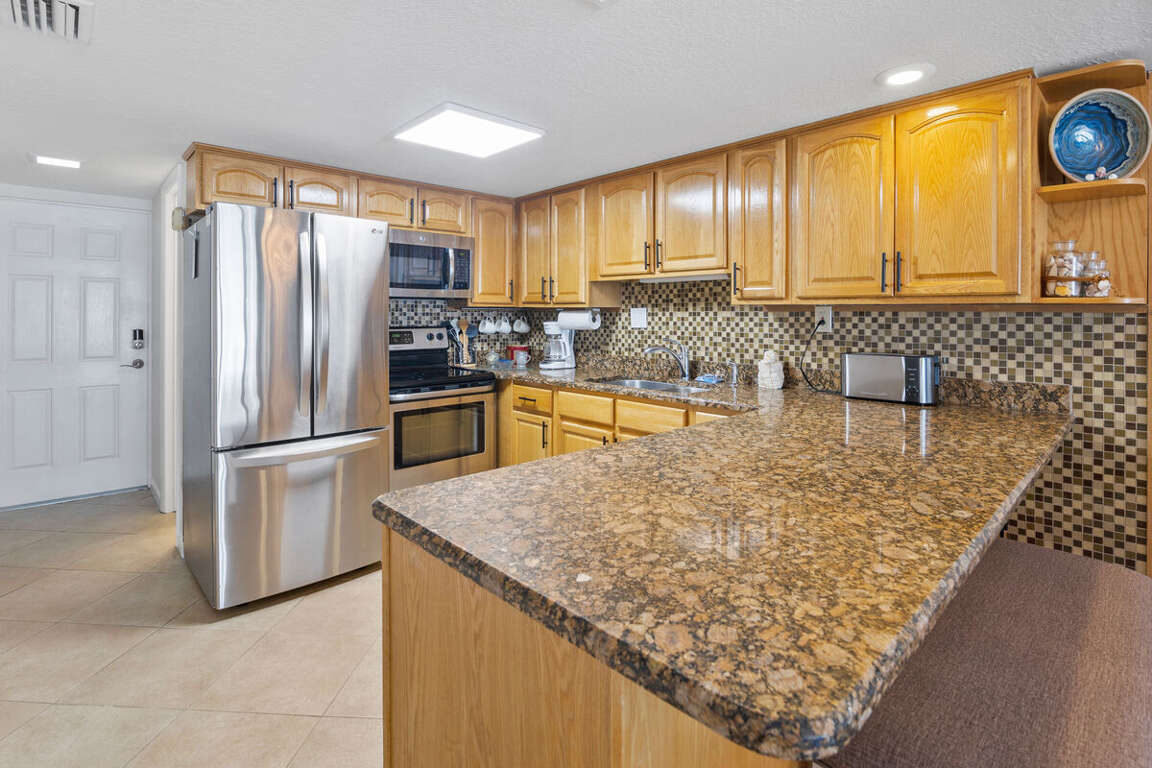 This modern kitchen is made for easy vacation meals. Whip up breakfast smoothies or beach picnic lunches with all the essentials close at hand.<br />