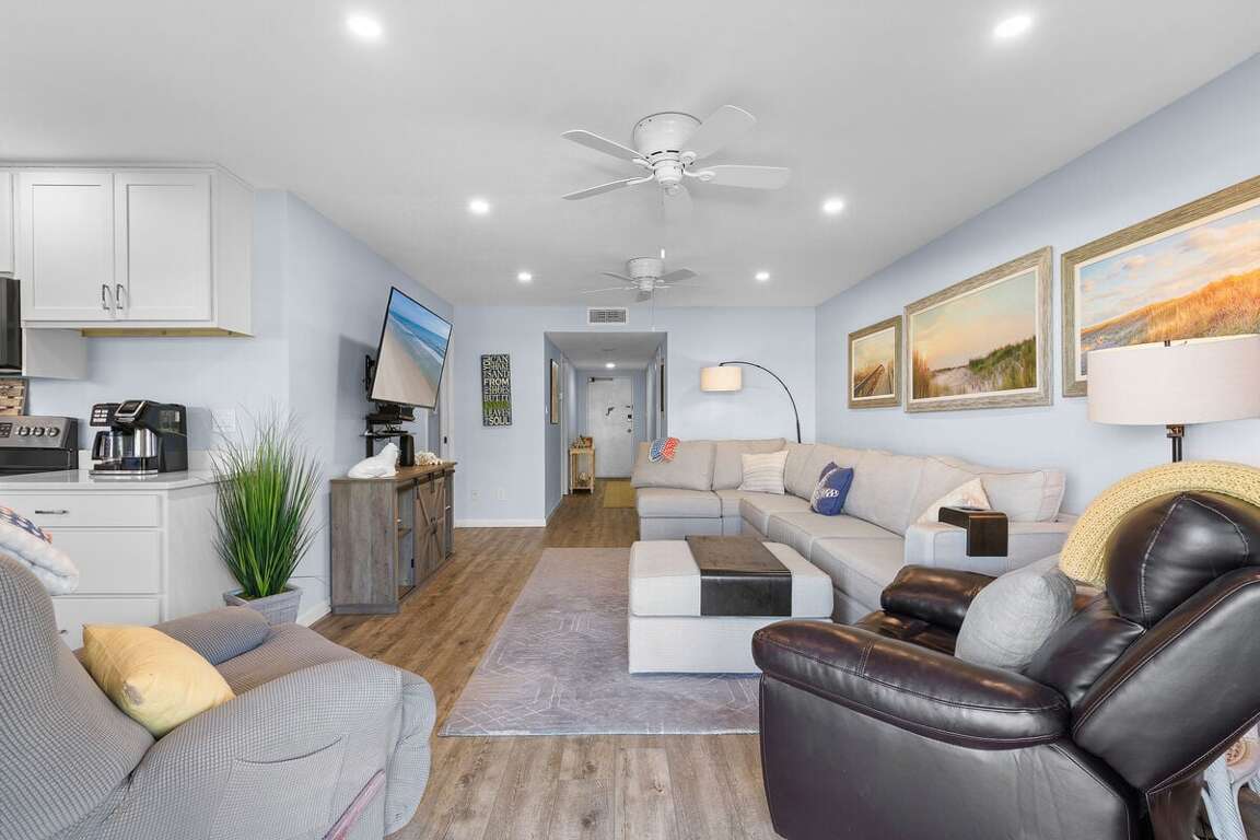 ► Spacious living area with coastal décor and walk-out balcony<br />
