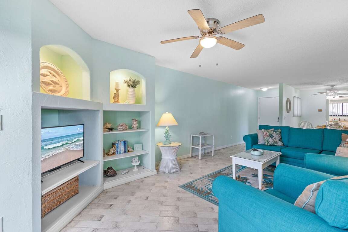 After a day in the sun, kick back with smart TVs, comfy seating, and space to unwind.<br />
