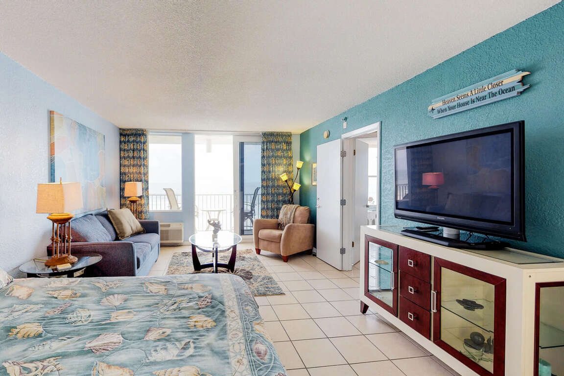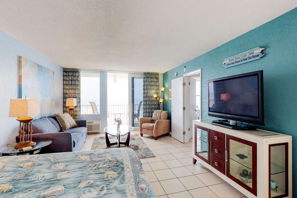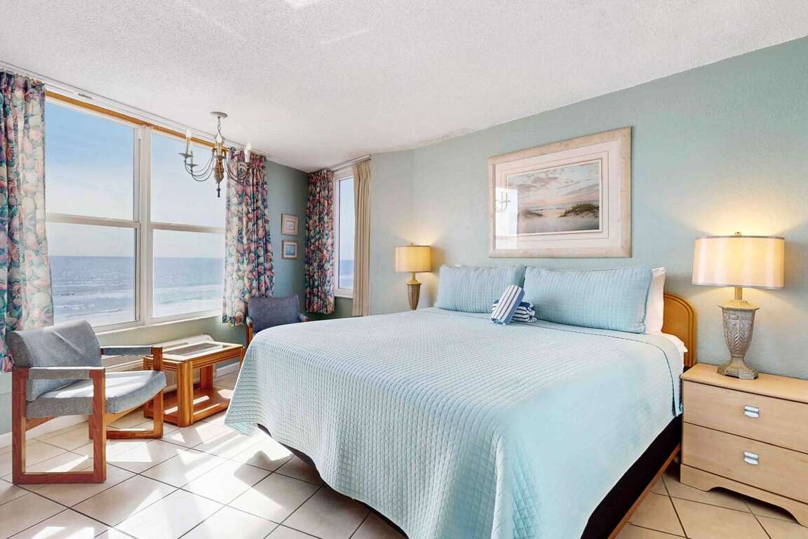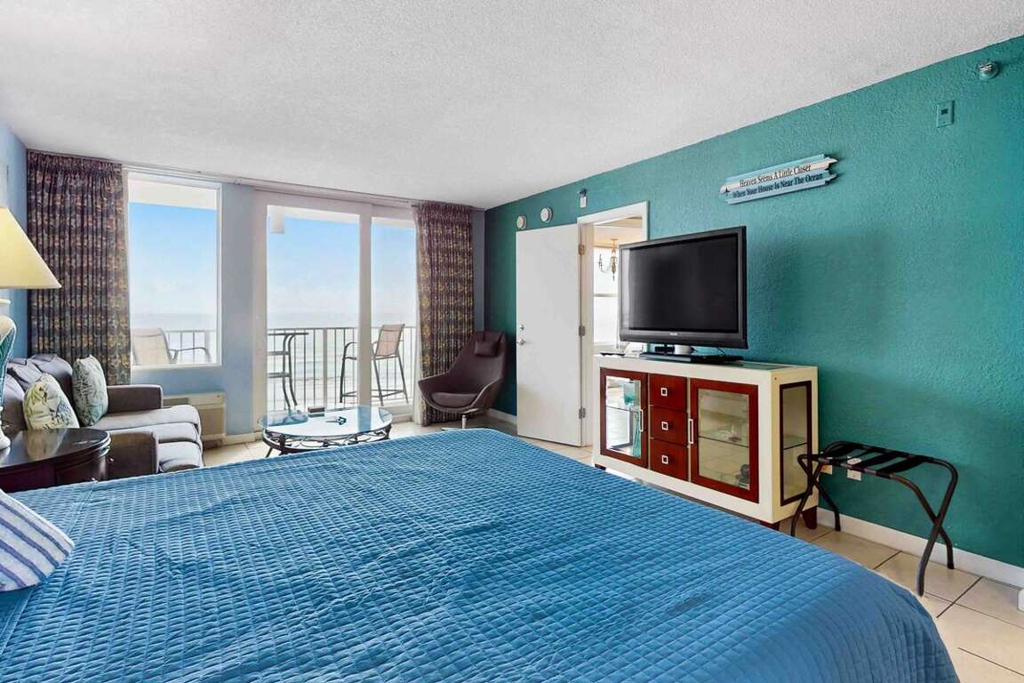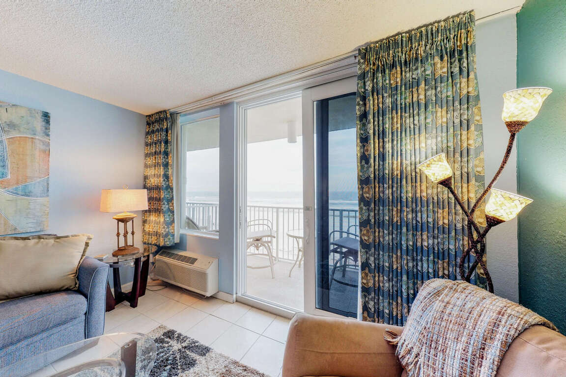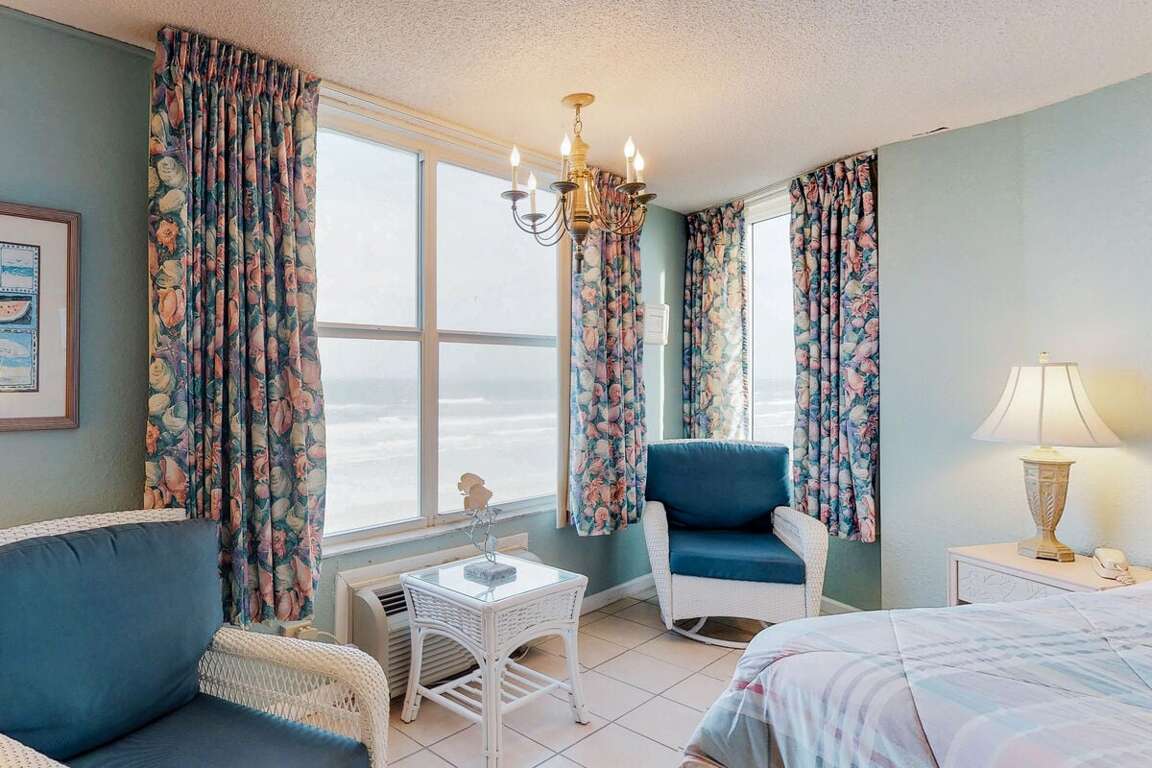 Oceanfront condo located in Daytona Beach, FL at Daytona Harbour Beach Resort 401, offers luxury living with stunning beach views, making it the perfect vacation rental spot.