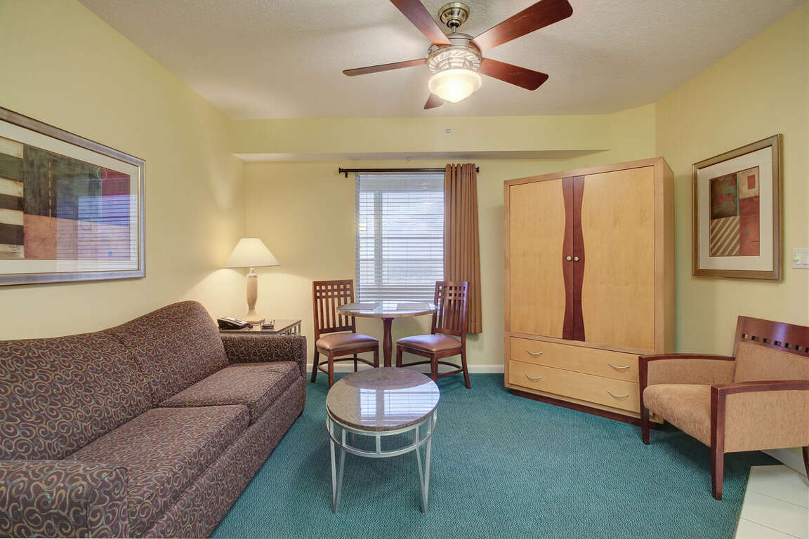 This vacation rental offers a unique ocean view living area at Daytona Beach. With its cozy 498 sq. ft. size, it's the perfect beachfront retreat.