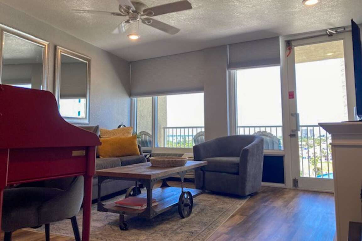 Experience the comfort of the Daytona Pirates Cove 701- Tide Shift, a top-rated oceanfront rental in Daytona Beach, FL, offering an ideal place to stay with numerous amenities.