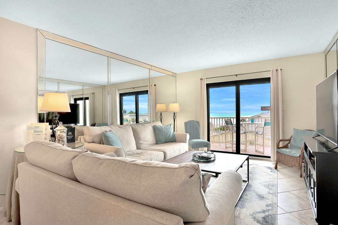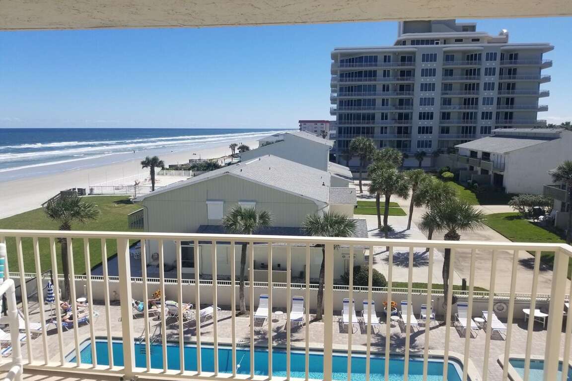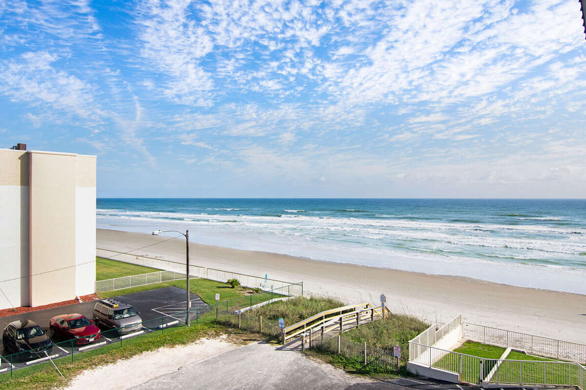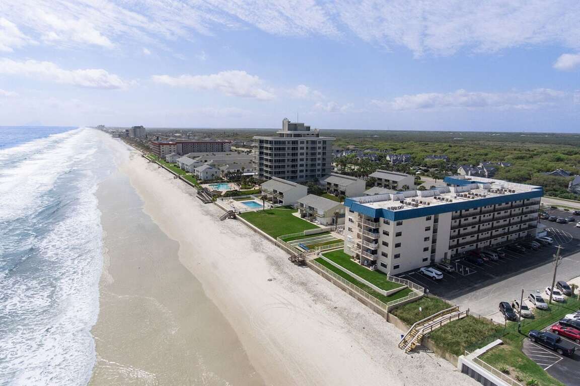 Relax in our oceanfront 2-bedroom condo, Nsb Hacienda Del Sol #407 - Seaside Hideaway, located in the beautiful New Smyrna Beach, FL. Experience the luxury of a hot tub and the convenience of nearby activities.