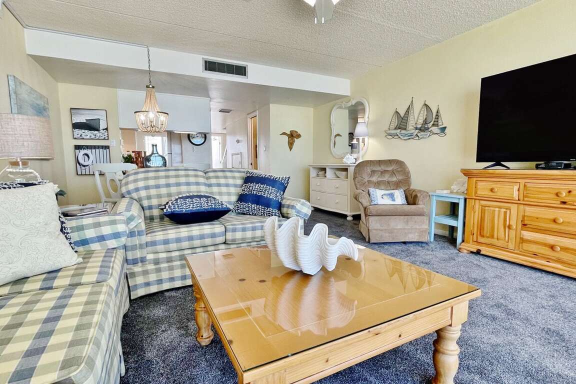 Located in New Smyrna Beach, FL, Nsb Pelican 303e is the perfect oceanfront place to stay. The house has two bedrooms, internet access, and access to a community pool.