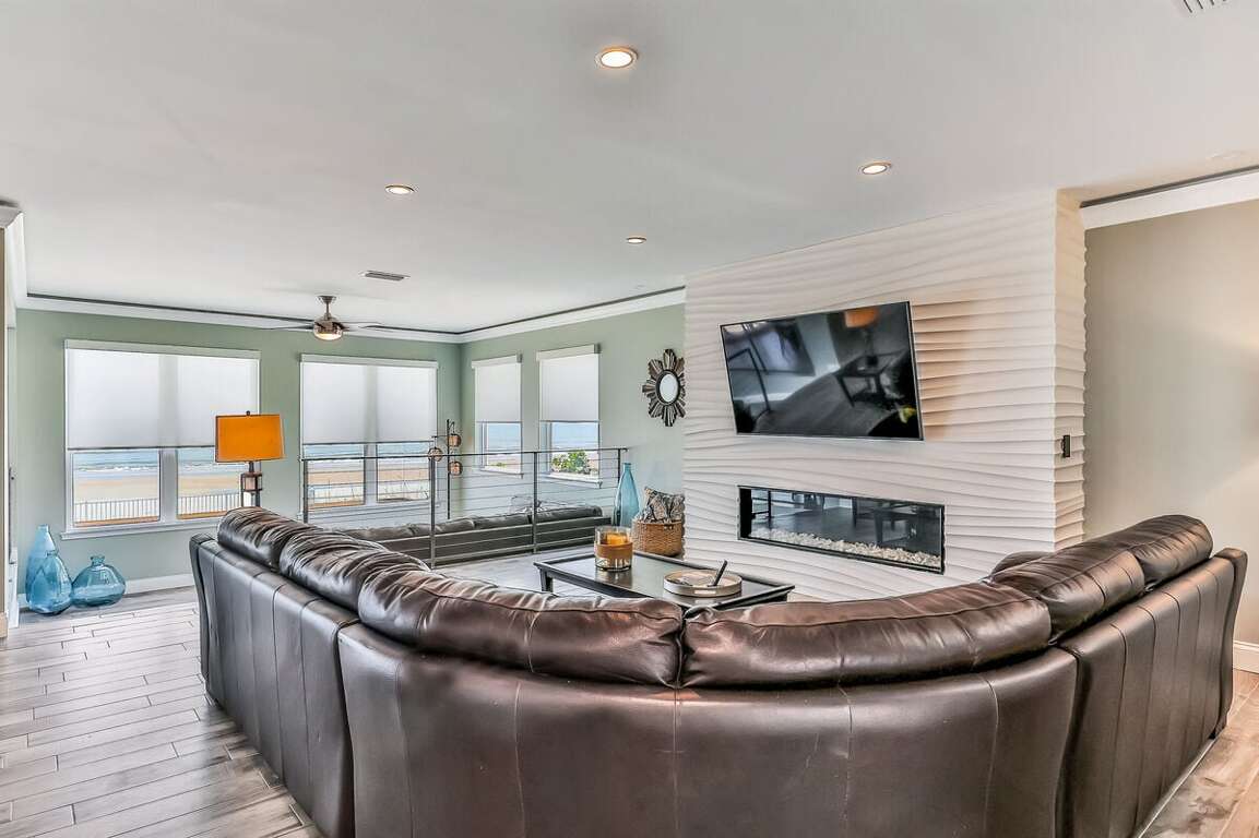 Experience this exquisite oceanfront cabin in Daytona Beach, FL. Our 7-bedroom Daytona Atlantic Sunrise Home Plus Cottage is the perfect place to stay, featuring a hot tub and a vast 5000 sq ft living space.
