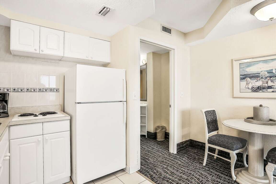 Perfect for prepping light meals or beach snacks, the kitchenette includes a full-size fridge with ice maker, stove, microwave, and essential cookware.<br />