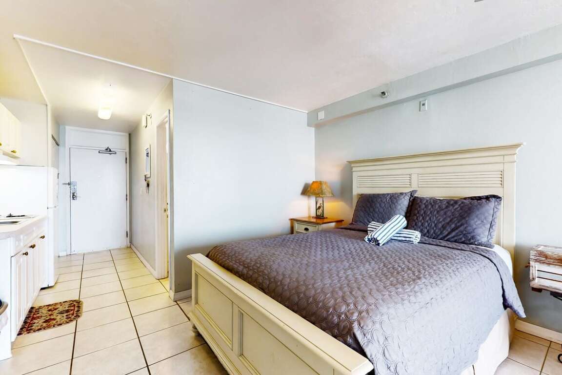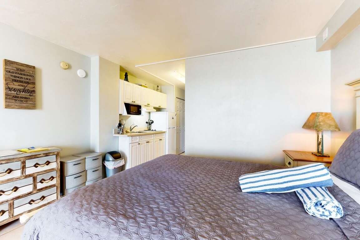 Relax in your bright, cozy studio featuring a plush queen bed, comfortable seating area, and easy flow out to your private balcony with ocean views. The sleeping setup is perfect for solo travelers or a romantic couple’s getaway.<br />