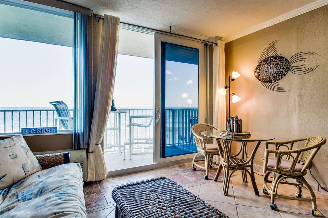 This oceanfront gem located in Daytona Beach, FL, offers the comfort and amenities of a vacation rental, with a hot tub and scenic beach views as its standout features.